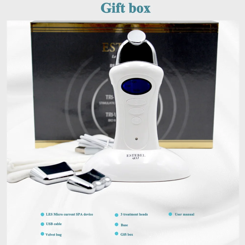 Посылка включает в себя: LES микро токовое спа-устройство, 3 лечебные головки, Dcking, руководство пользователя, usb-кабель, подарочная коробка