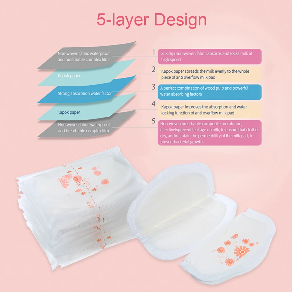 Наши одноразовые вкладыши для бюстгальтера выполнены из материал высокого качества, 5-слойный дизайн, чтобы зафиксировать подачу молока, держать сушки и анти-обратного потока, безопасная и удобная вещь для мамы. Дизайн упаковки для отдельных листов, не только санитарный, но и удобный для мам.