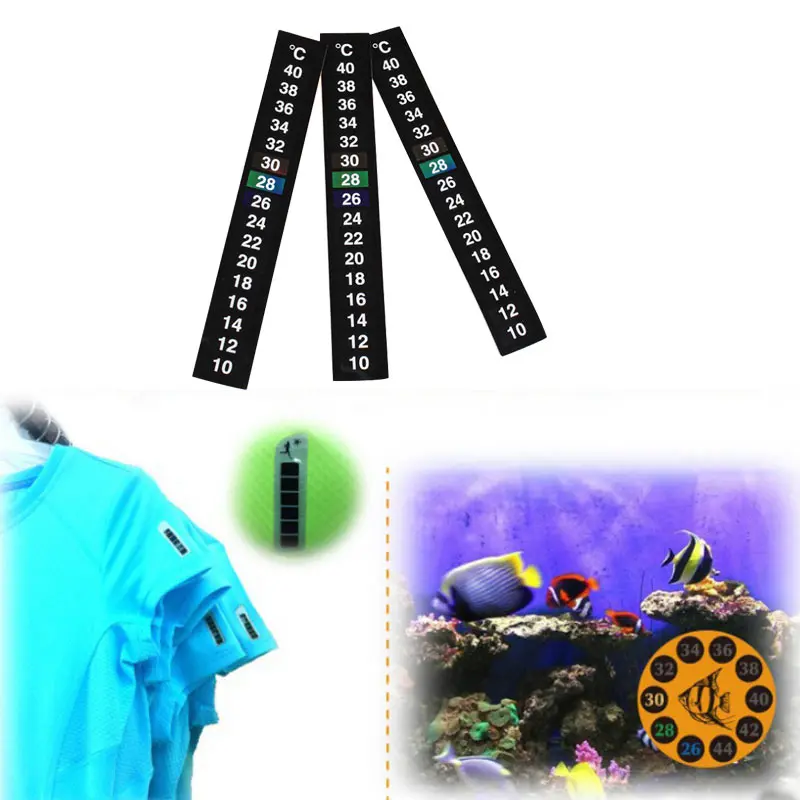 Термометр изменяет свой цвет в зависимости от окружающей температуры. Если температура окружающей среды составляет 27 °C, то фон отметки шкалы 27 °C станет красочным, а другие отметки весов остаются черными.