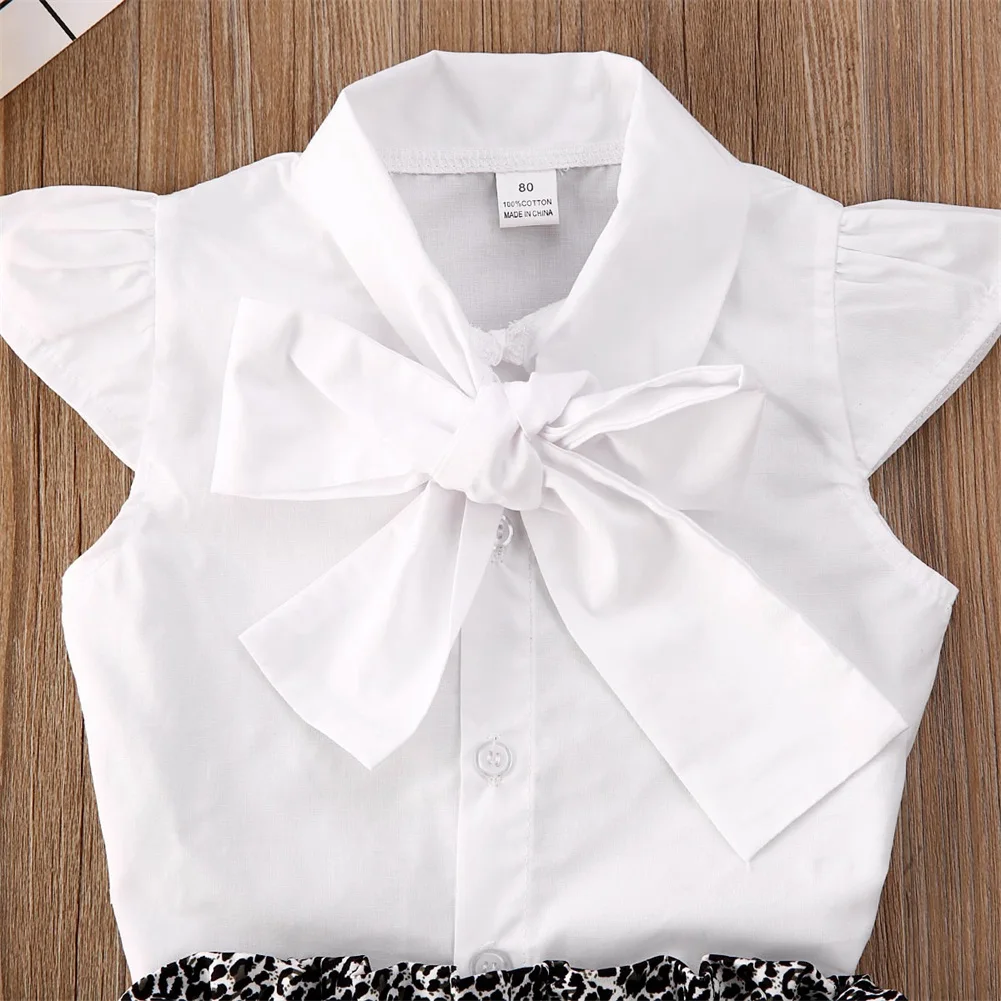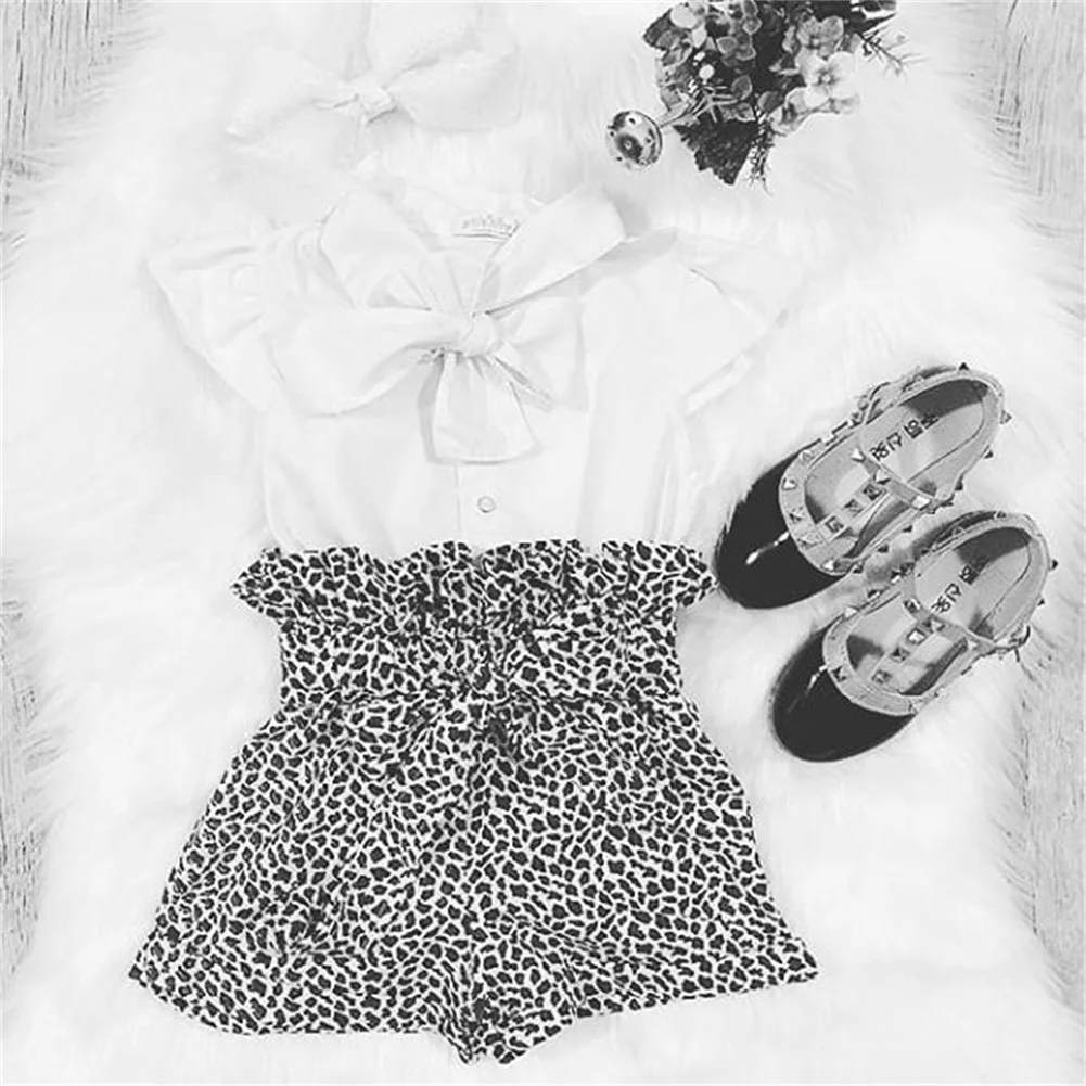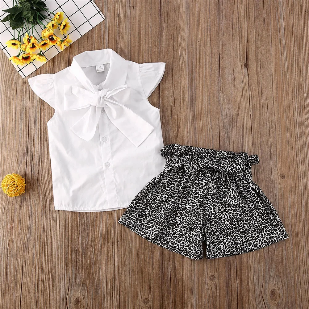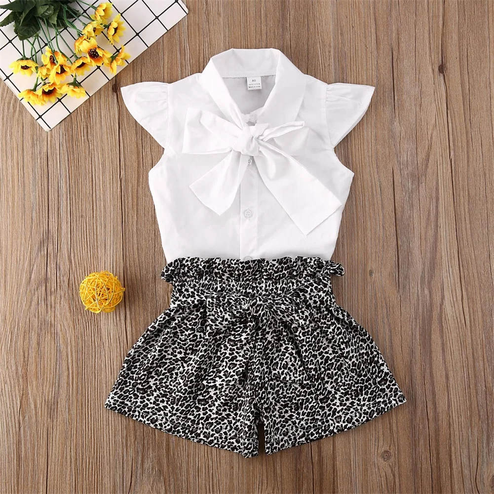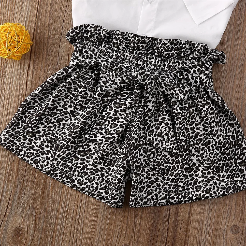 Комплект модной детской одежды из хлопка для девочек летний топ без рукавов из 2 предметов, рубашка и шорты с леопардовым принтом, комплект детской одежды для малышей!