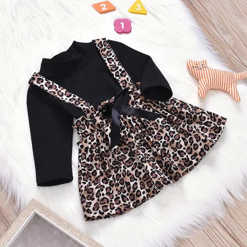 Милая блузка с длинными рукавами комплект из топа и леопардовой юбки на бретельках, стильный и привлекательный, который сделает вашу маленькую принцессу еще более милой и модной