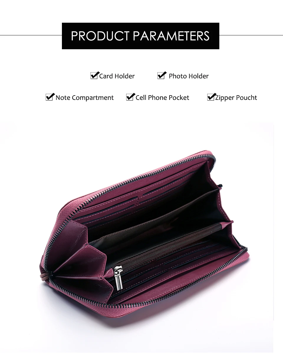 Модный женский длинный кошелек из натуральной кожи, Женский кошелек на молнии, зажим для денег, Много отделов, клатч, Женский кошелек для карт, для девочек