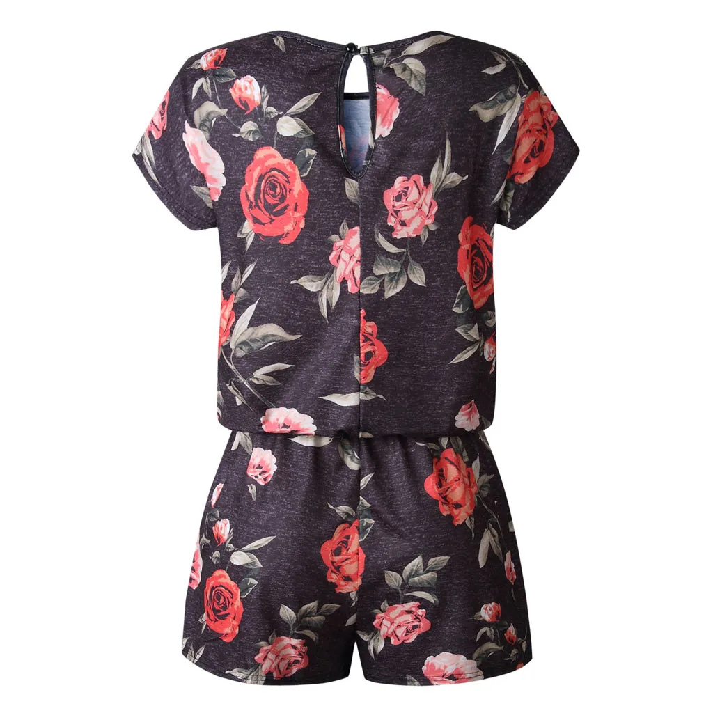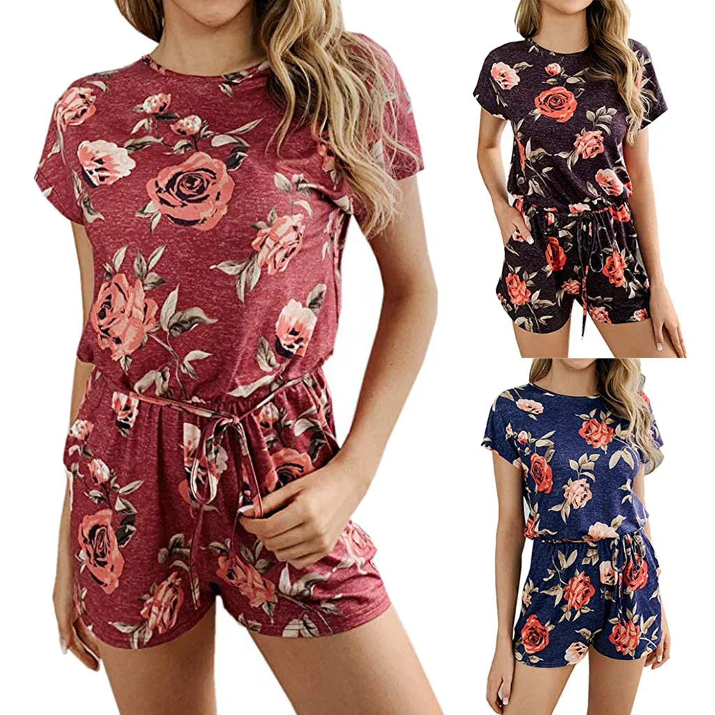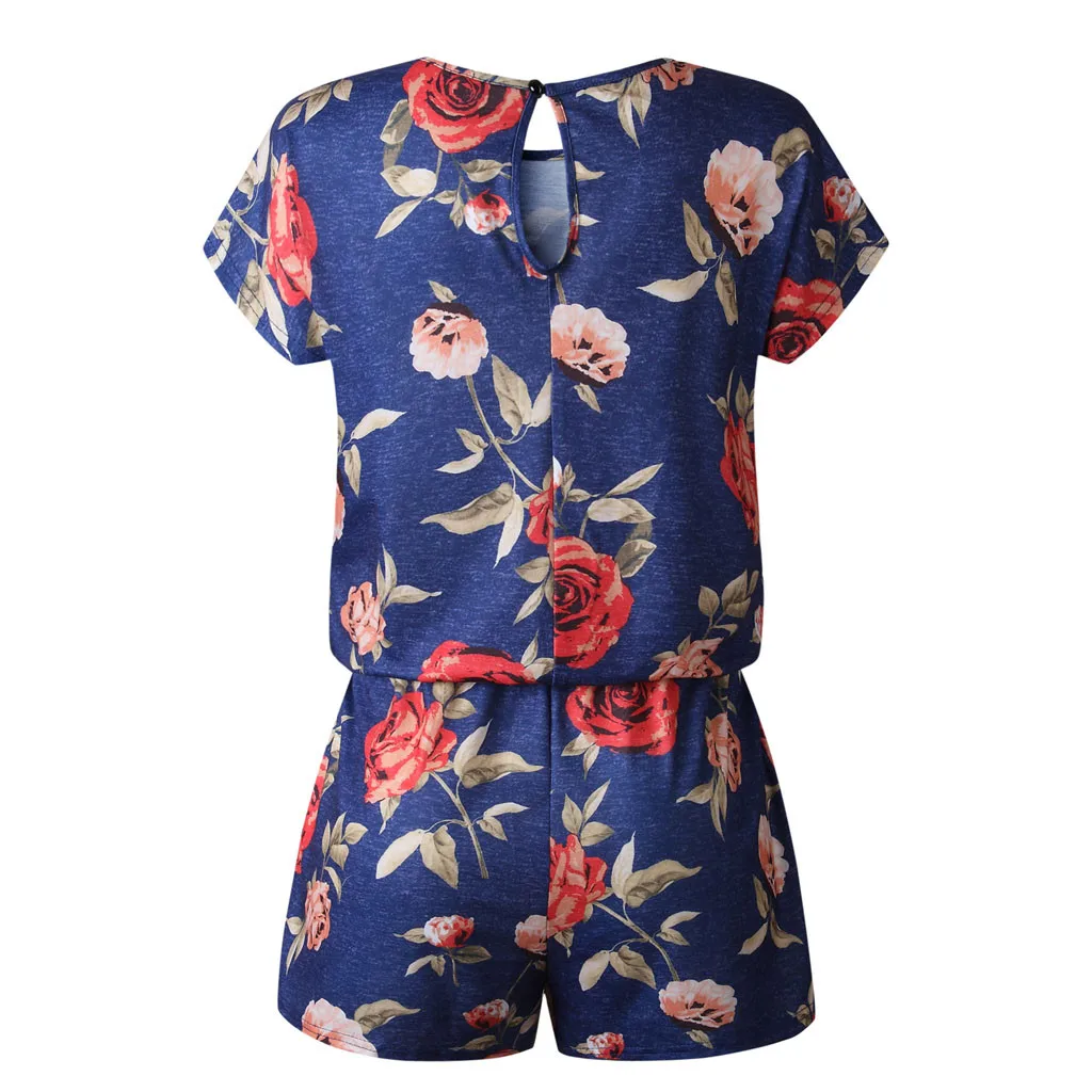 Женский Летний комбинезон, Модный повседневный комбинезон с цветочным принтом, круглым вырезом и коротким рукавом, 2020