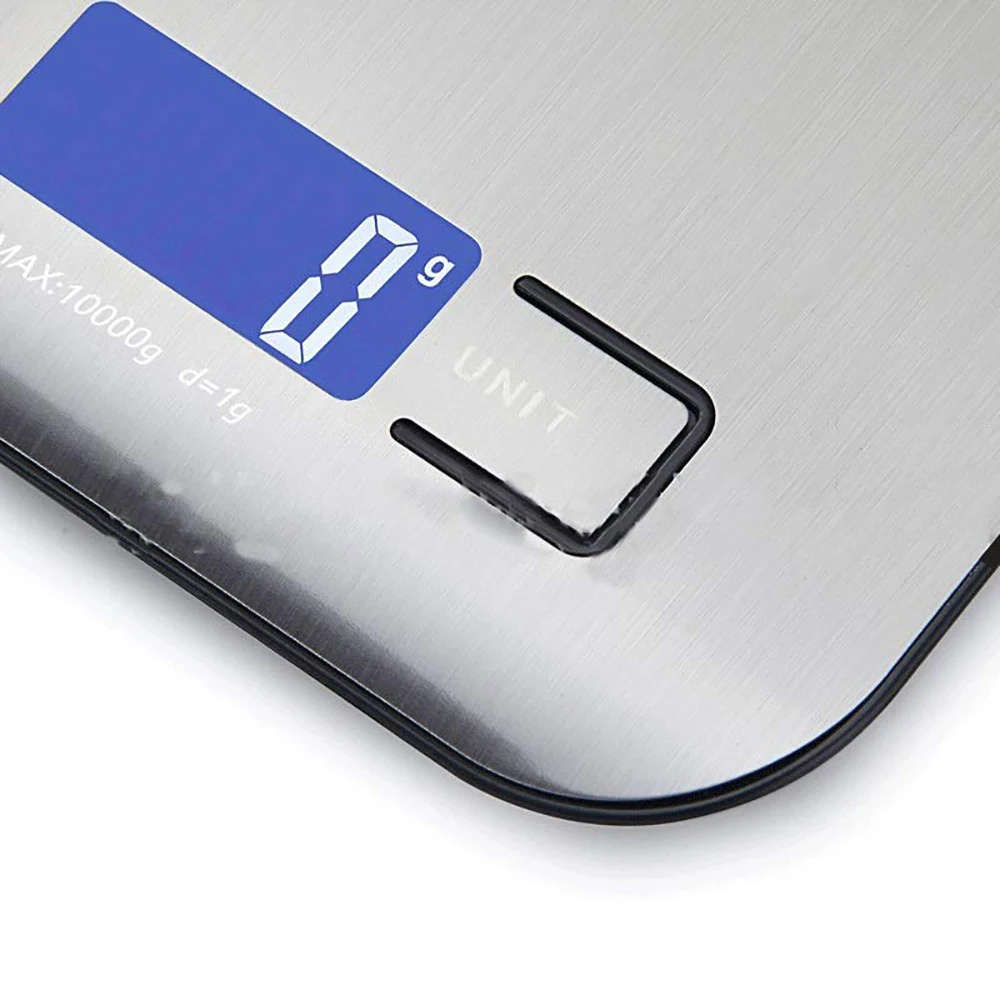 Размер: 180*140*17 мм Эта цифровая шкала имеет бесконечное использование для личных или коммерческих сред-отлично подходит для домов, кухонь, офисов и многого другого. Весы имеют легко читаемый ЖК-дисплей с красивой прозрачной подсветкой. С емкостью 11 фунтов (5 кг), вы можете весить различные предметы с легкостью. Вы будете удивлены всеми используемыми вами для этого продукта. Функции взвешивания Вы можете легко выбрать один из измерений в oz, lb:oz, g, ml (молоко и вода). Эта цифровая шкала измеряет точный прирост 0,04 унций (1 г), чтобы точно взвешивать ваши товары. Питание обеспечивается 2 батареями AAA (не входят в комплект), что делает весы портативными и гарантирует, что вы можете легко приобрести сменные батареи. Функция тары Функция tare позволяет пользователю вычесть вес контейнера из общего веса, чтобы определить вес нетто содержимого, исключая Вес контейнера, который держит их. Четкий дисплей и автоматическое выключение Весы имеют легкий для чтения дисплей с подсветкой, оставаясь 30 секунд для легкого чтения. Для экономии энергии весы также оснащены функцией автоматического отключения, что позволяет шкале выключить через 2 минуты бездействия. Не смешивайте новые и использованные батареи для питания устройства Технические характеристики Вес: 176 унций/5000 г/11 фунтов Единицы измерения: g / oz / lb:oz /ml (молоко и вода) Размеры: 0,04 унций/1 г Минимальное измерение: 3g-5g Автоматическое выключение: 2 минуты Мощность: 2 х ААА 1,5 В переменного тока (не входит в комплект)/USB зарядка Размеры: 7,32x5,70x0,67 дюймов Содержимое посылка 1 х Цифровые кухонные весы 1 x Руководство пользователя 1 х USB кабель для передачи данных Примечание: Не смешивайте новые и использованные батареи для питания устройства