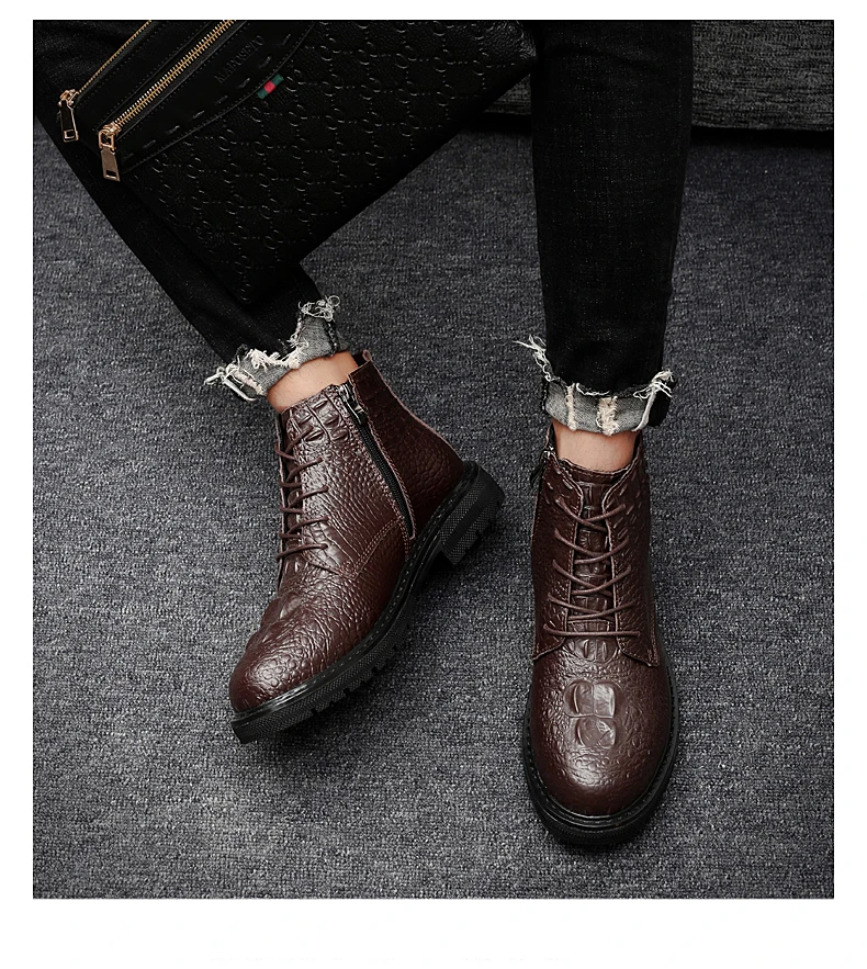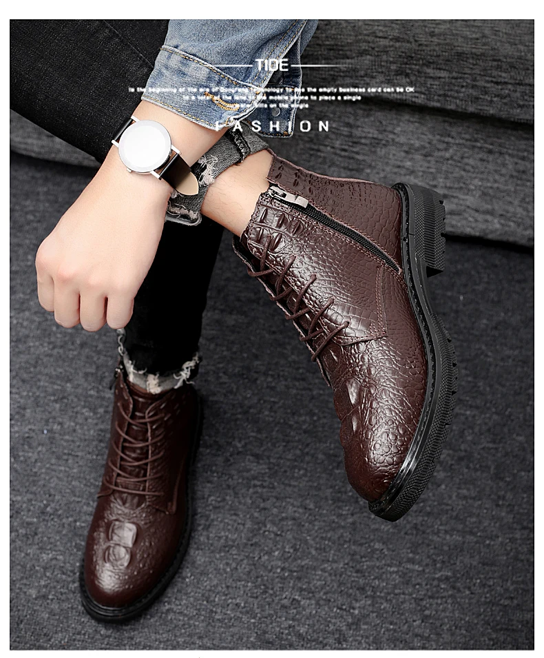 Модные ботинки на резиновой подошве с узором «крокодиловая кожа»; Мужские кроссовки; Zapatos Invierno Hombre; Зимняя обувь; Мужская кожаная обувь; Рабочие ботинки
