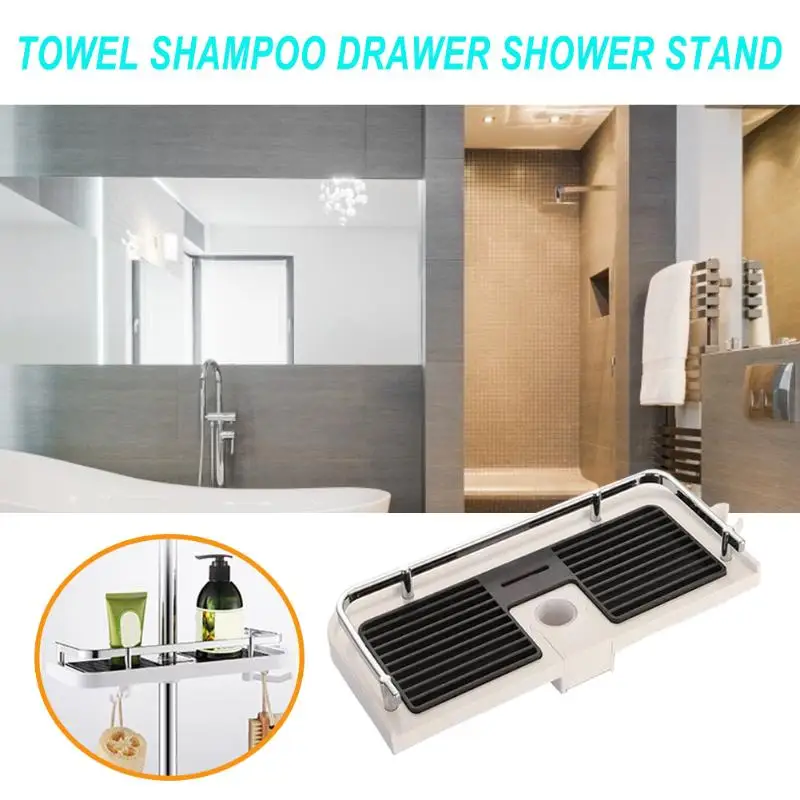 Регулируемая полка для ванной комнаты, держатель для хранения, душевой стержень, шампунь, гель, слив, органайзер, лоток, гаджеты