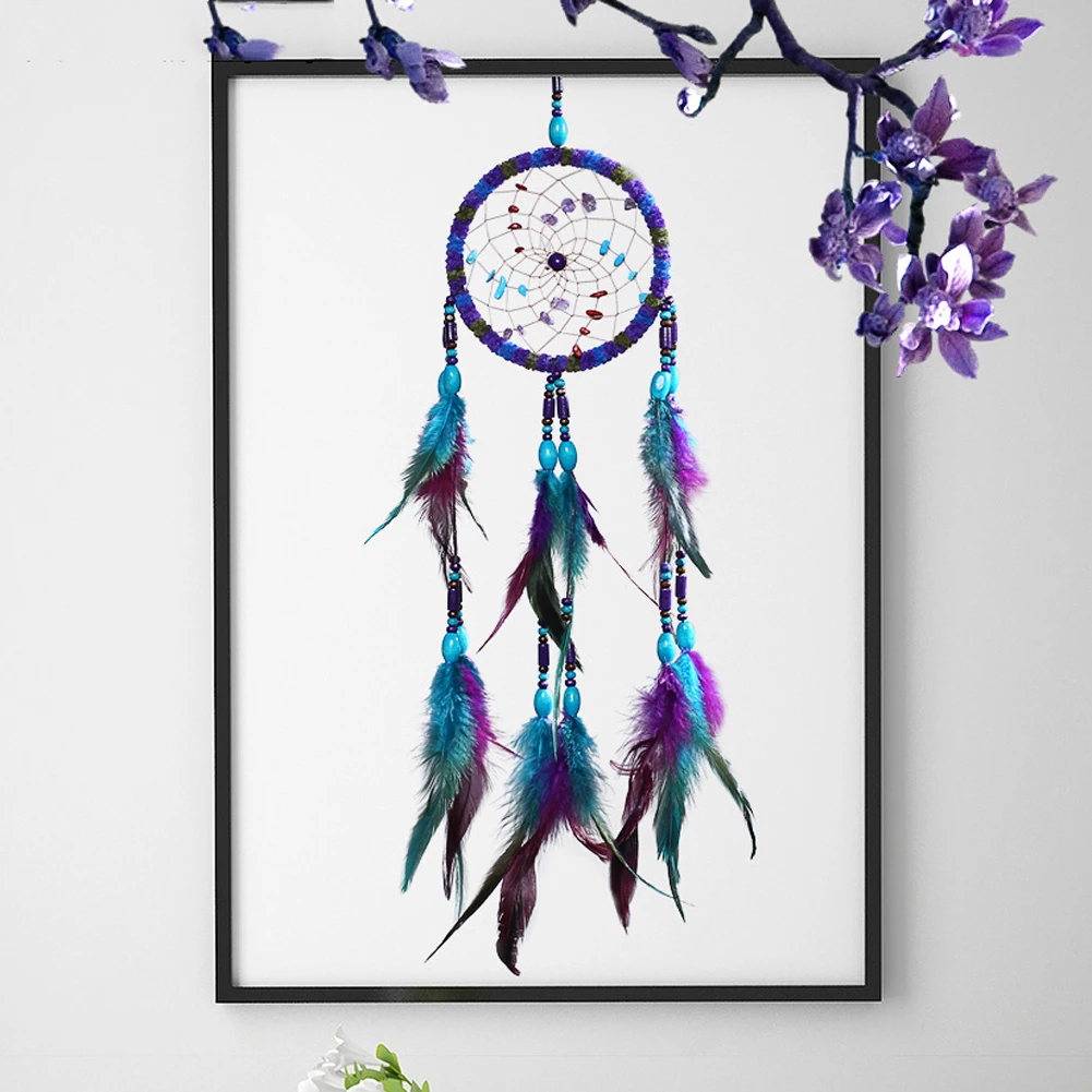 Ручной работы Ловец снов Разноцветные перья бисера дизайн Висячие подвесные