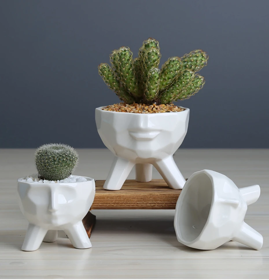 Новый геометрический керамический цветочный горшок Абстрактный Цветочный горшок для лица человека белый суккулентный горшок для растений Трипод Горшечное растение для украшения дома