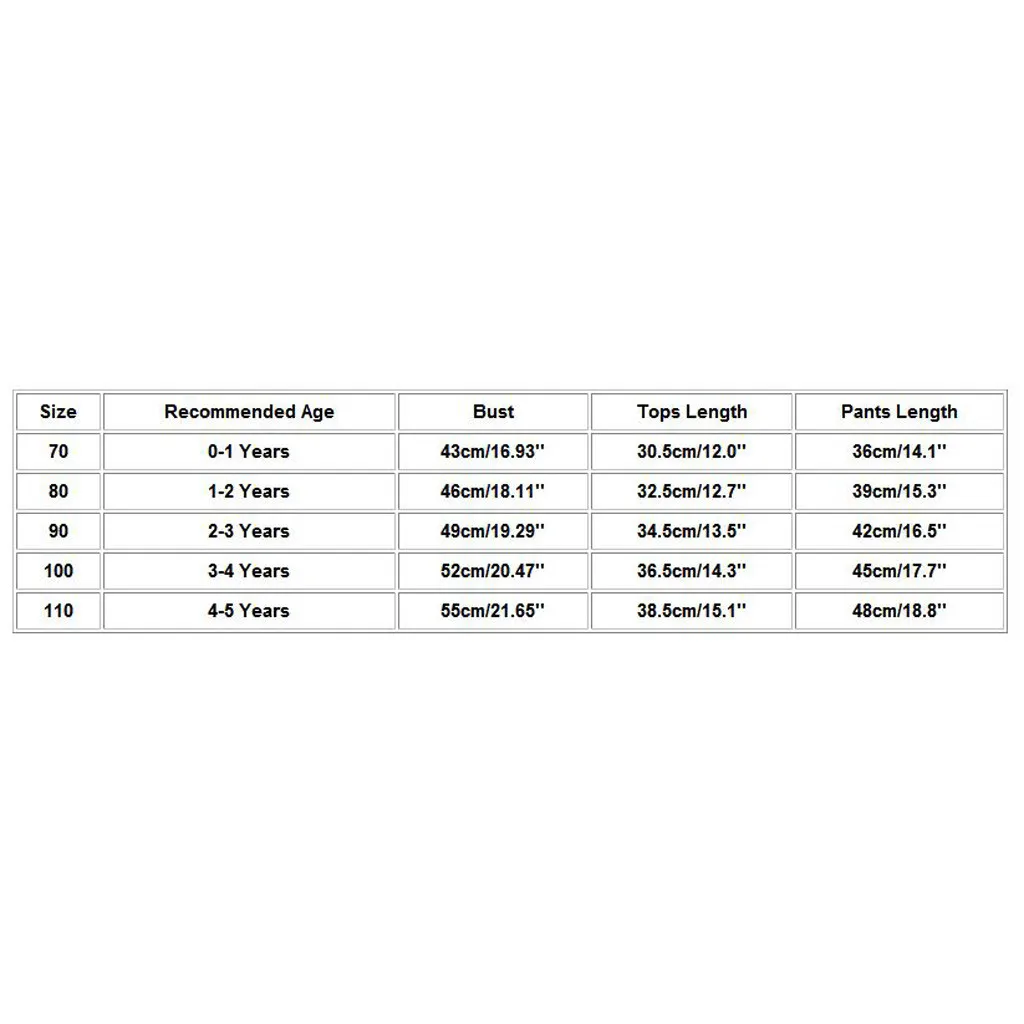 | Размер | Рекомендуемый возраст | Обхват груди | Топы Длина | Брюки Длина |