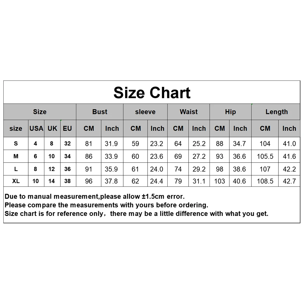 [Наш Размер XL] Обхват груди: 96 см/37,8 ", обхват бедер: 103 см/40,6", обхват талии: 79 см/31,1 ", рукав: 62 см/24,4", Длина: 108,5 см/42,7 "(прибл.)