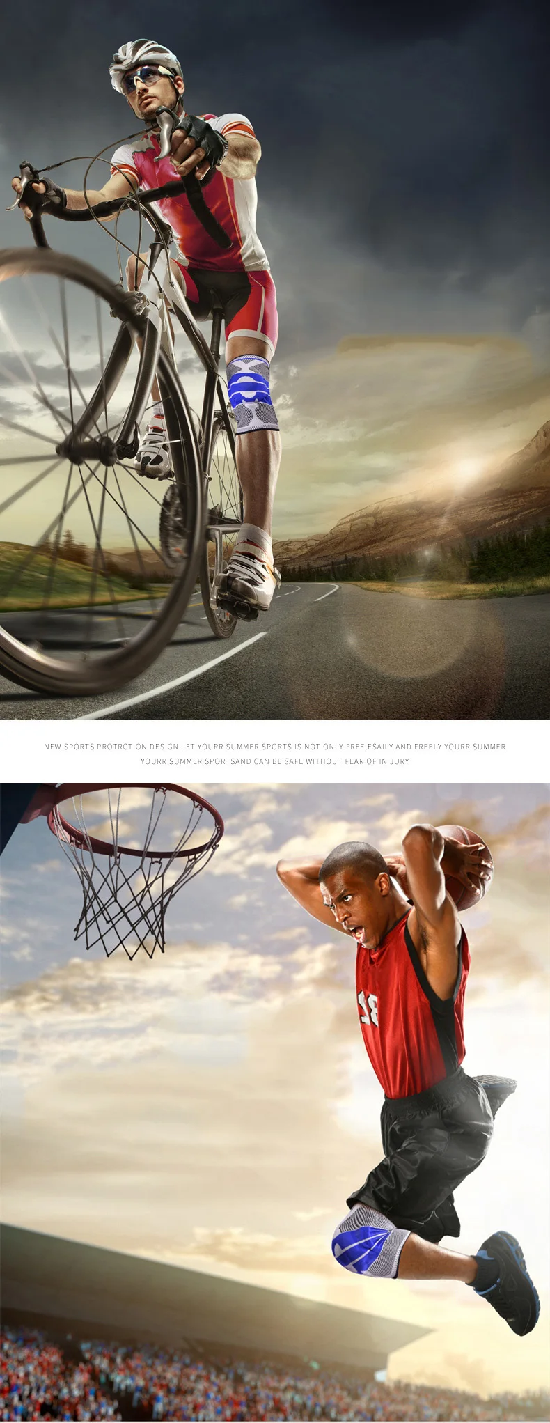 1 шт., наколенник для коленной чашечки, силиконовый пружинный наколенник для баскетбола, трикотажный компрессионный эластичный рукав для колена, поддержка спорта