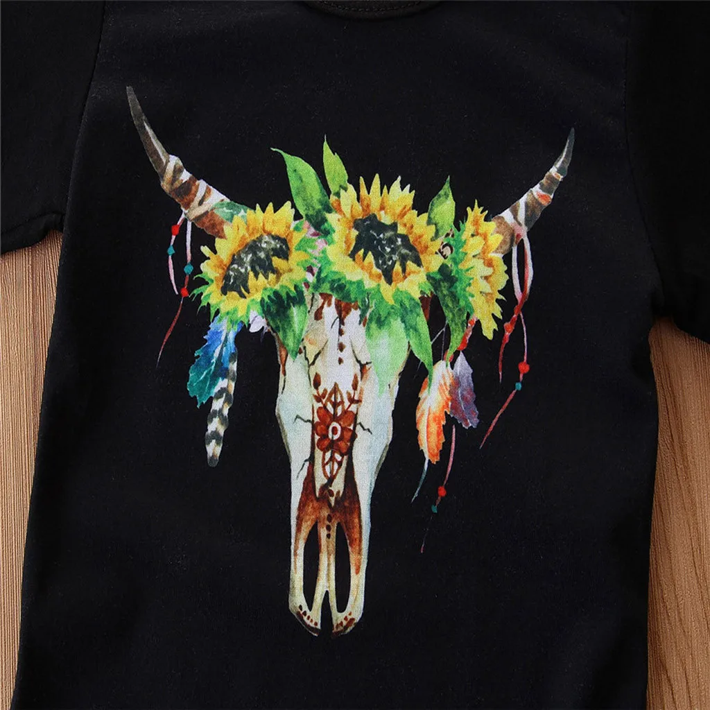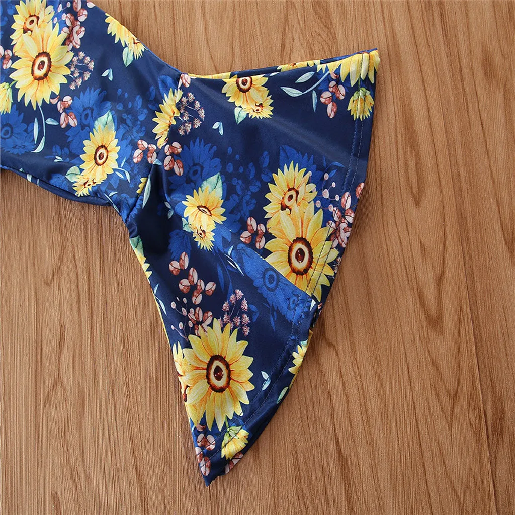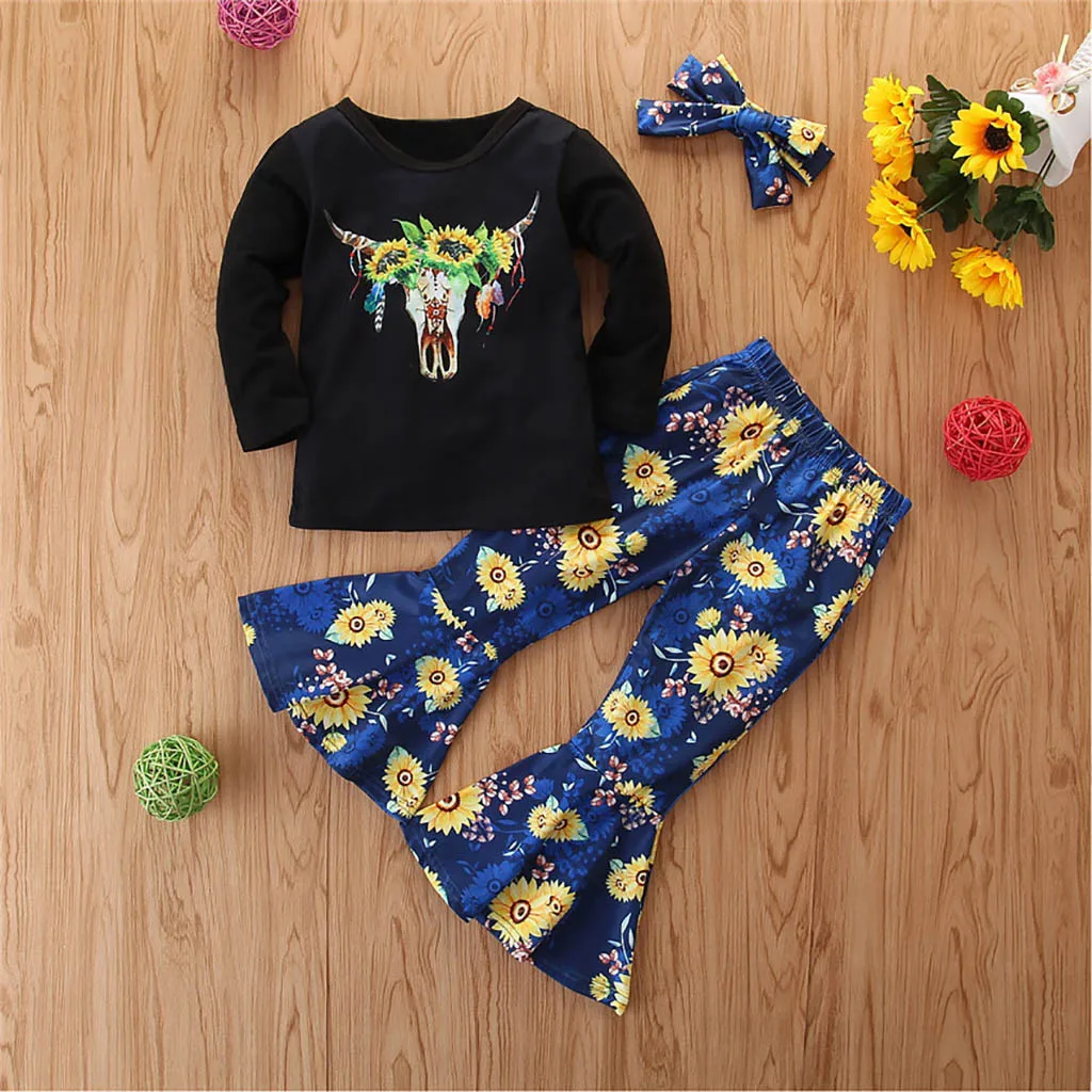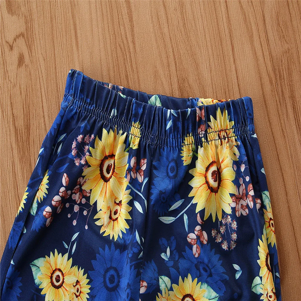 Детские топы с рисунком для маленьких девочек, штаны с подсолнухами + набор повязок