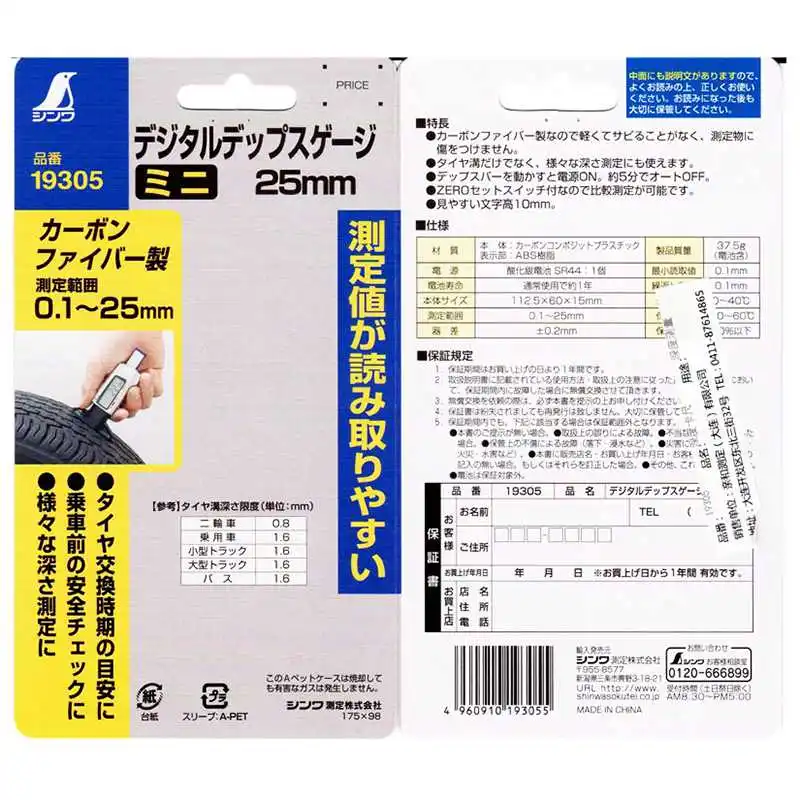 Цифровой манометр SHINWA Penguin, автомобильный измеритель глубины протектора, штангенциркуль, измеритель глубины, 0,1-25 мм, 19305