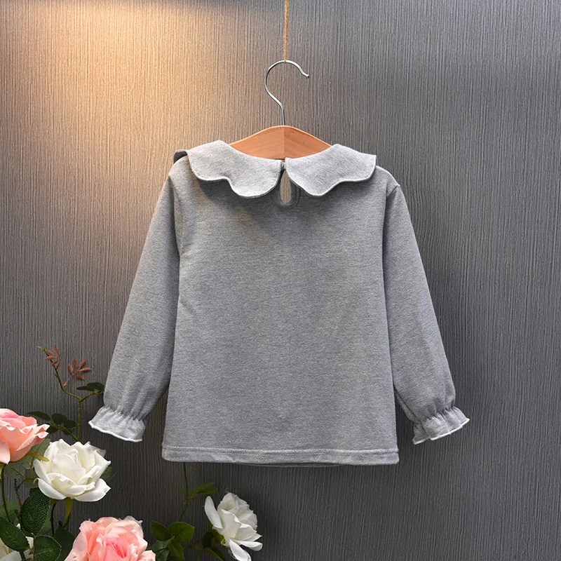 Детская теплая хлопковая футболка с длинным рукавом для маленьких девочек, блузка с круглым вырезом, футболки, топы Модный дизайн, 100% новинка, высокое качество!