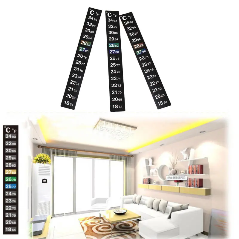 Термометр меняет цвет в соответствии с окружающей температурой. Если температура окружающей среды составляет 27 °C, то фон отметки 27 °C станет красочным, а другие отметки шкалы останутся черными.