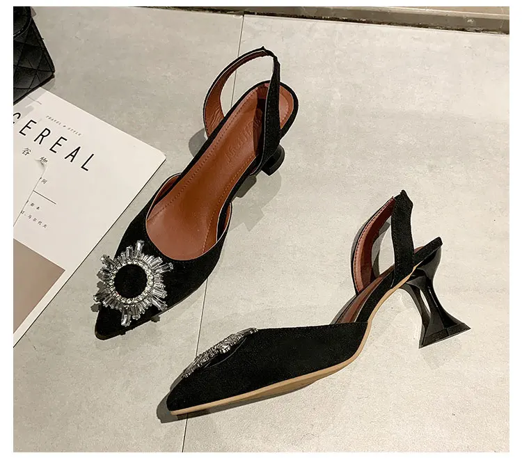 Туфли на высоком каблуке со стразами; Женские туфли-лодочки; Вечерние пикантные Босоножки на каблуке; Босоножки на высоком каблуке с острым носком и ремешком на щиколотке; Женская офисная обувь; Цвет Черный