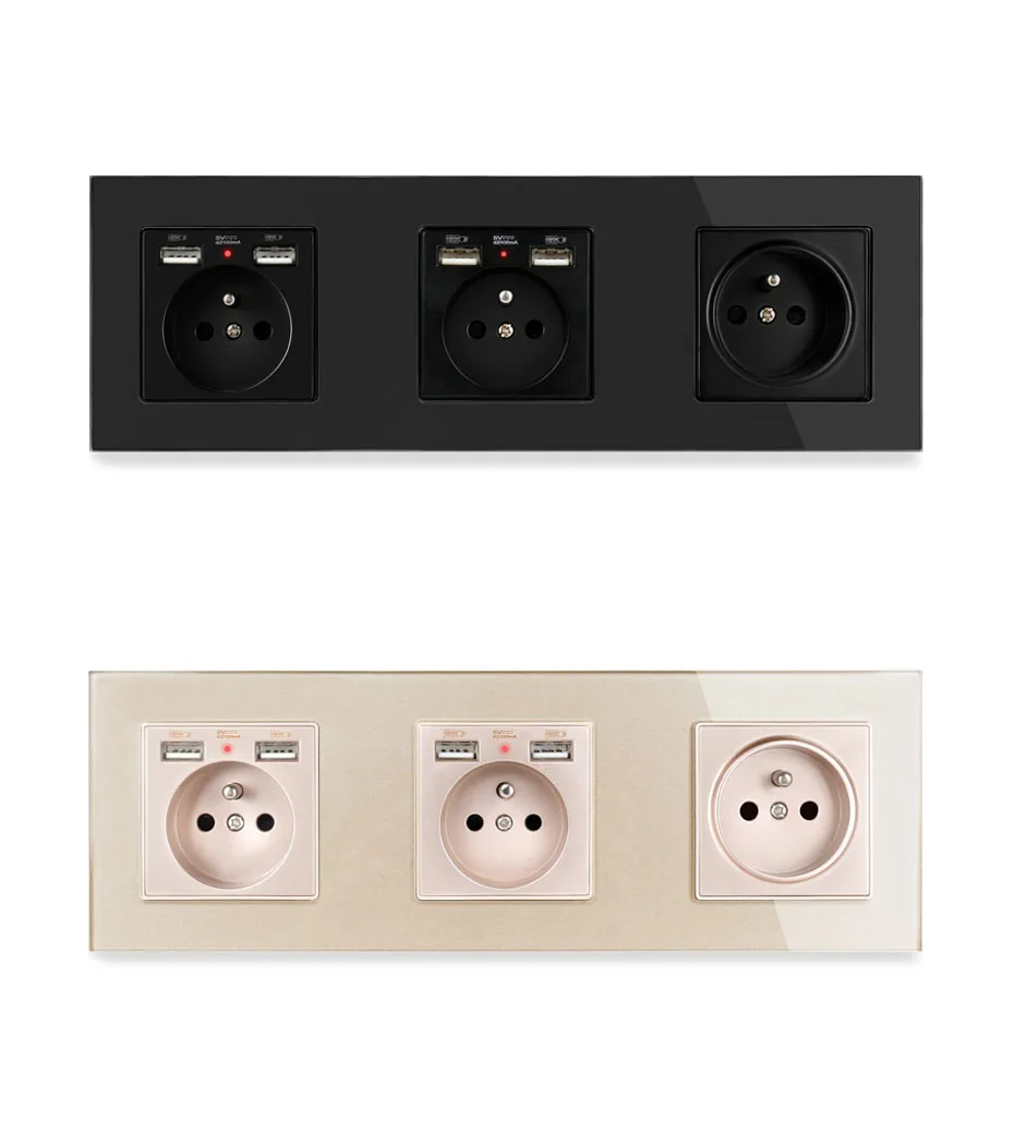 Esooli 3 банды черная французская стандартная настенная розетка с двойным usb-портом для зарядки + 1 банда французская розетка 258*86 мм Хрустальная стеклянная панель