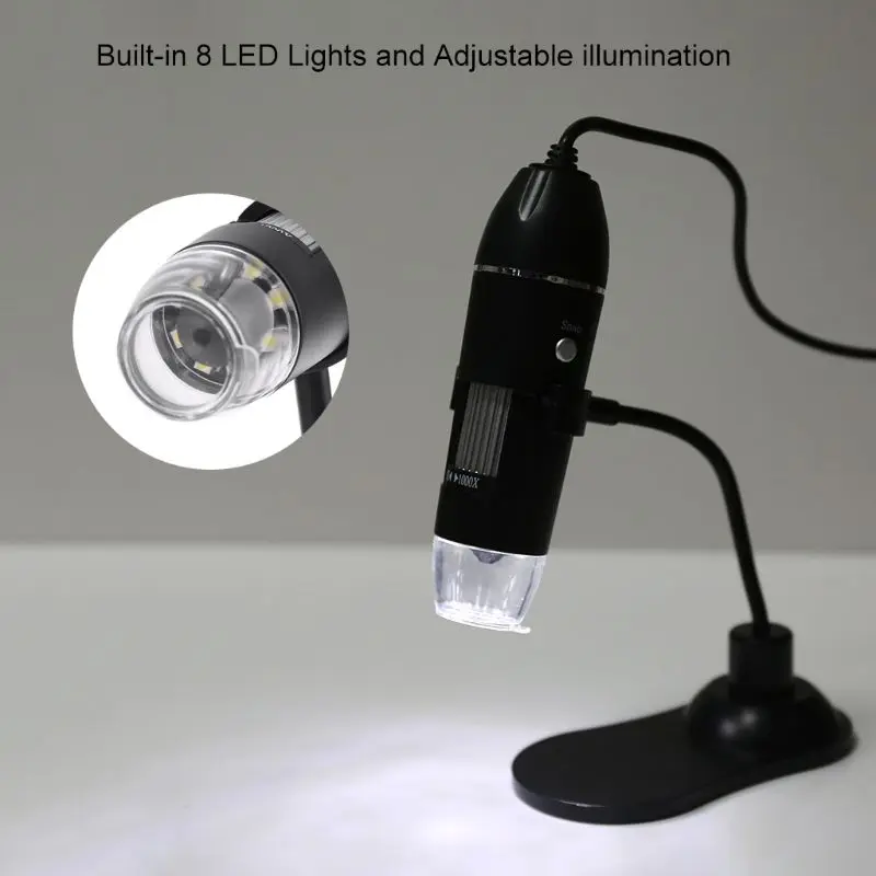 Встроенный 8 светодиодный светильник и регулируемое освещение, 0,3 МП камера, регулируемый коэффициент увеличения, от 0X до 1000X