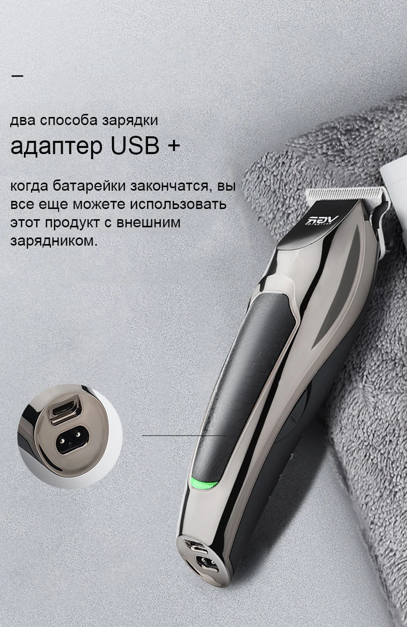 * Название продукта: VGR 0 резак резные ножницы • Модель: V030 * Знать в конце: режущая головка из нержавеющей стали * Вес нетто: 131 г * Размер корпуса: 15x4,5x3,5 см * Время зарядки: 1,5 ч * Время использования: 2 ч * Напряжение: 100-240V ~ 50/60HZ * Мощность: 10 Вт * Режим питания: USB Перезаряжаемый * Метод очистки: мытье ножей