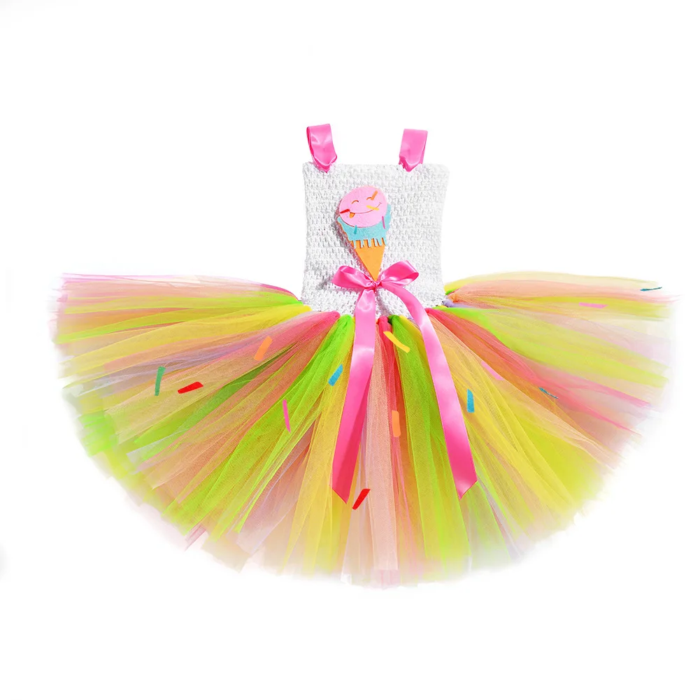 Милое Платье-пачка с мороженым для девочек яркое платье из тюля с радугой для девочек, детская Свадебная вечеринка по случаю Дня рождения костюм на праздник