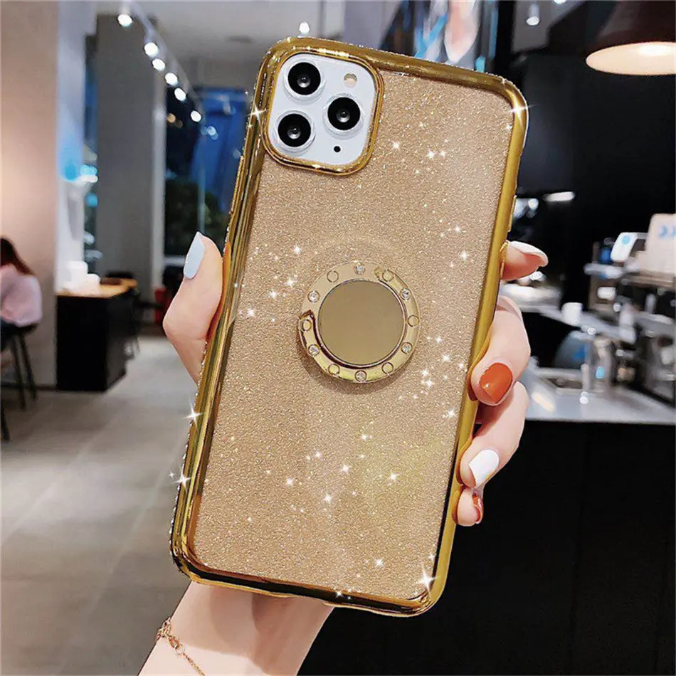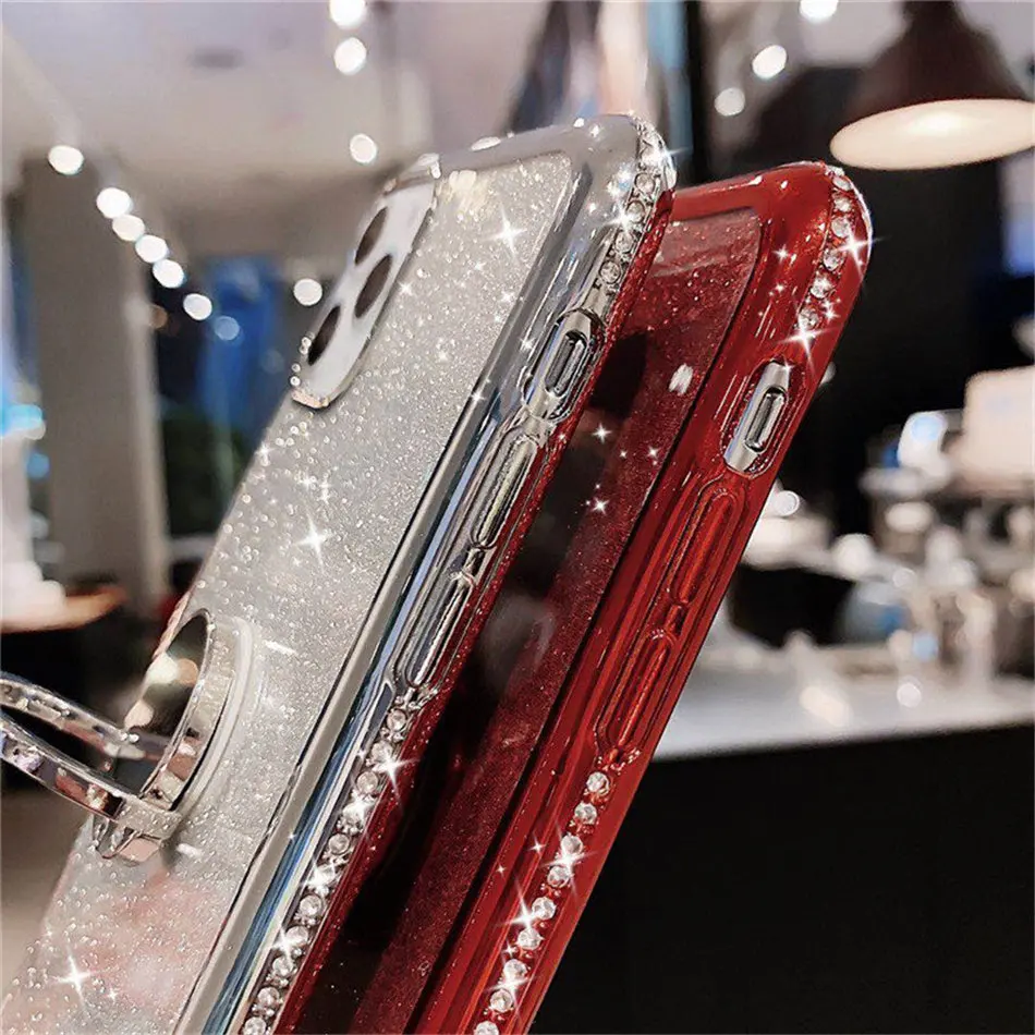 USLION блестящий чехол для телефона iPhone 11 Pro Max XS XR X 6 6s 7 8 Plus, мягкий ТПУ чехол со стразами и кольцом для пальцев