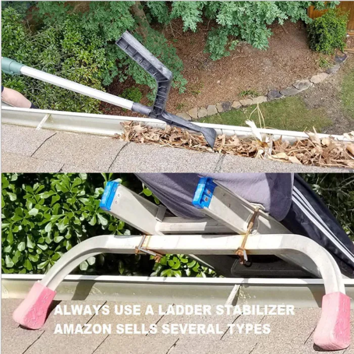 Крючок также может быть использован для подвешивания полюса с лестницы, чтобы вы могли использовать обе руки для альпинизма. Инструмент для желоба изготовлен из прочной и прочной конструкции для длительного использования.