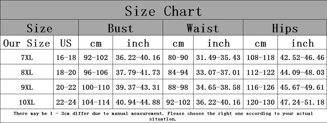 | 10XL | 22 ~ 24 | 104 ~ 114 | 40,98 ~ 44,92 | 92 ~ 102 | 36,25 ~ 40,19 | 120 ~ 130 | 47,28 ~ 51,22 |