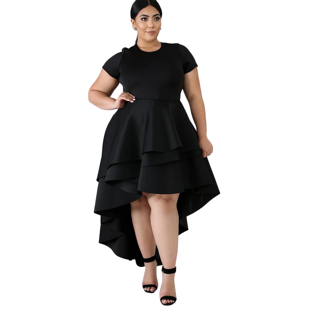 Wipalo весна лето размера плюс женское элегантное платье с овальным вырезом короткий рукав высокая низкая гофрированное коктейльное платье с коротким подолом однотонное Vestidos