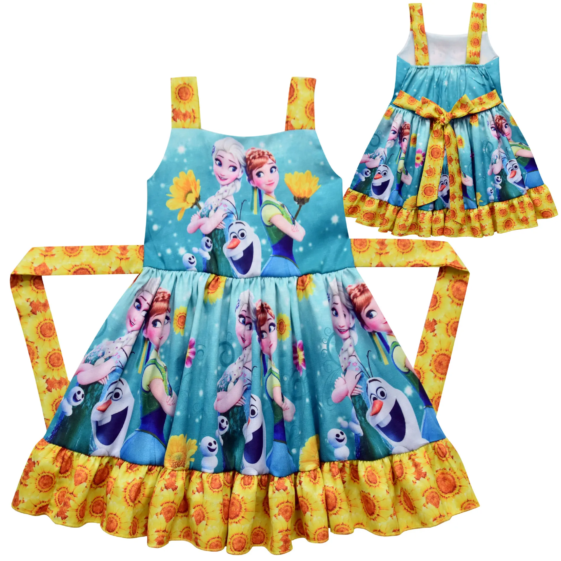 Летнее платье принцессы для девочек, платье без рукавов с подсолнухами, платье Анны и Аиши, изысканные вечерние платья из молочного шелка, одежда для маленьких девочек