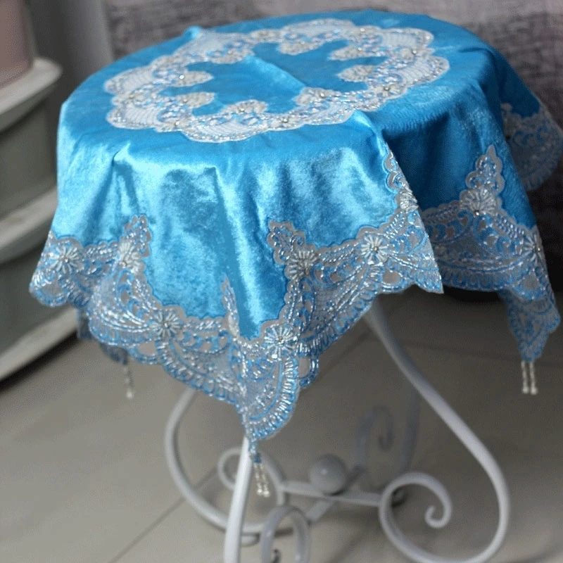 Европейский Павлин Синий бархат кружева вышитые границы кулон Классическая скатерть мебель электрическая многоцелевой Чехол Ткань Рождество свадебное украшение