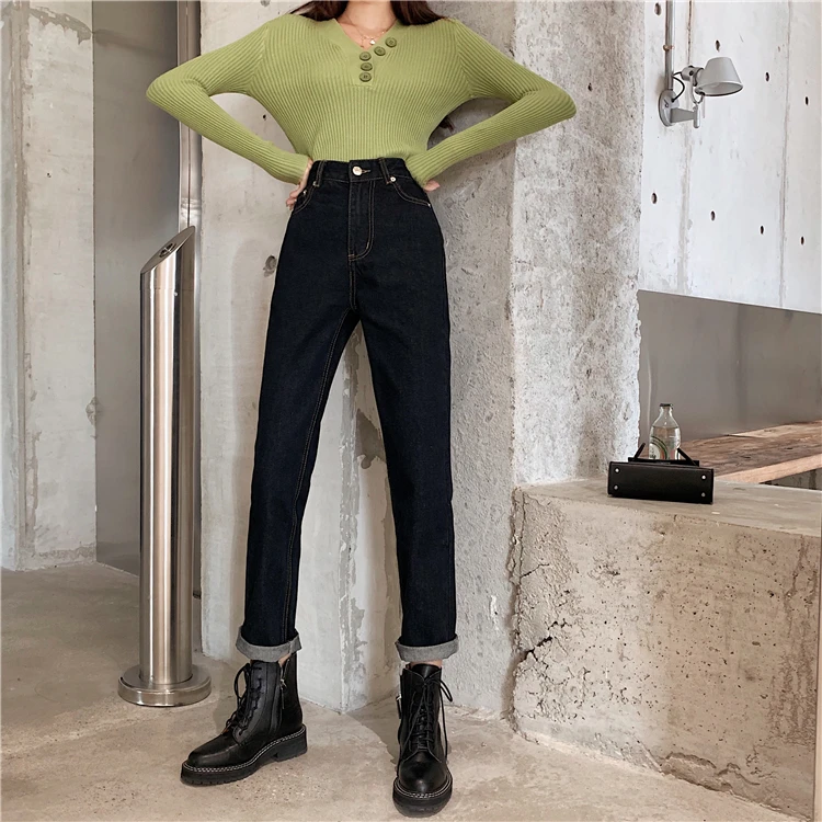 Винтажные стильные женские джинсы с карманами и высокой талией 2020 модные прямые