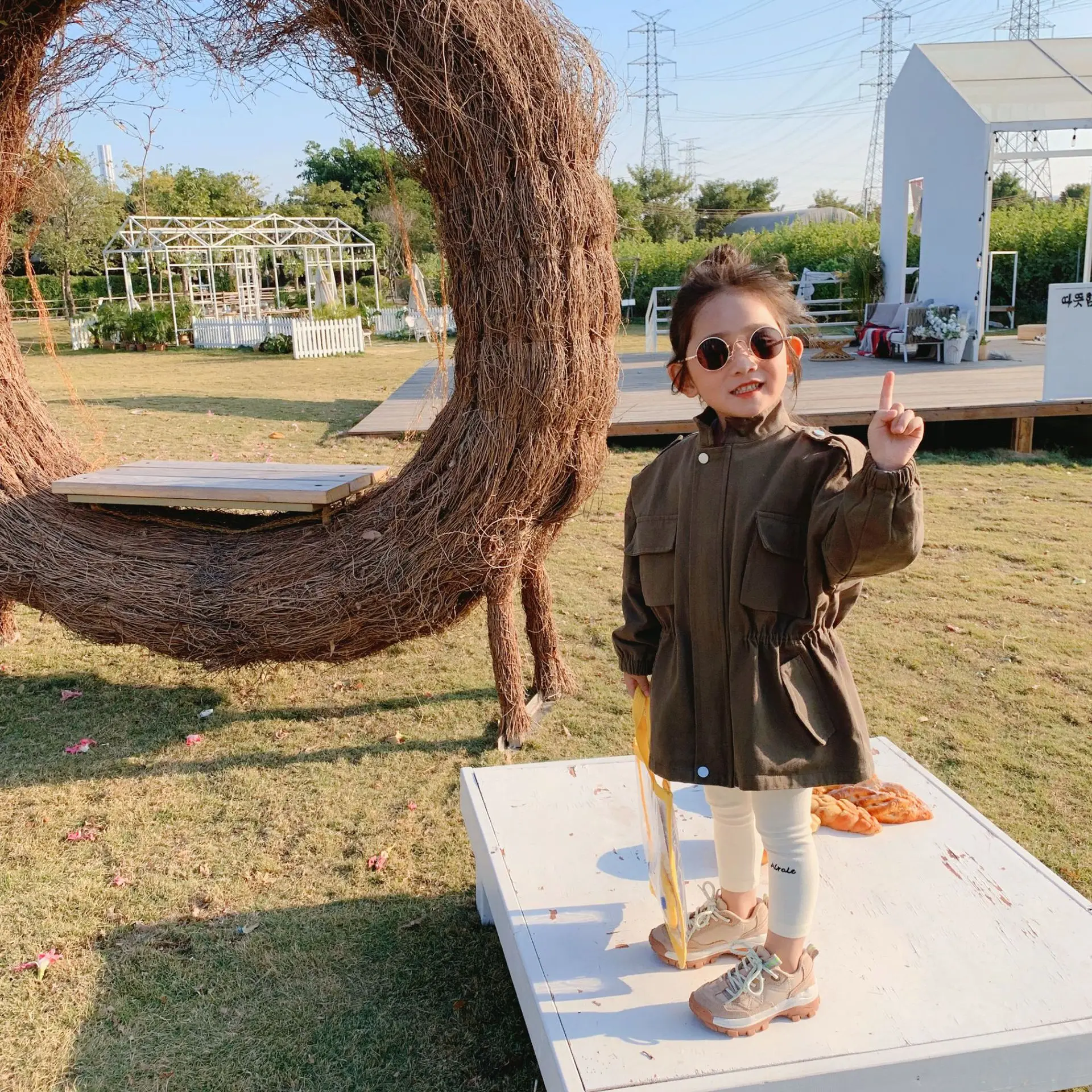 Детский тренчкот для девочек Длинная ветровка детская одежда Осенняя с