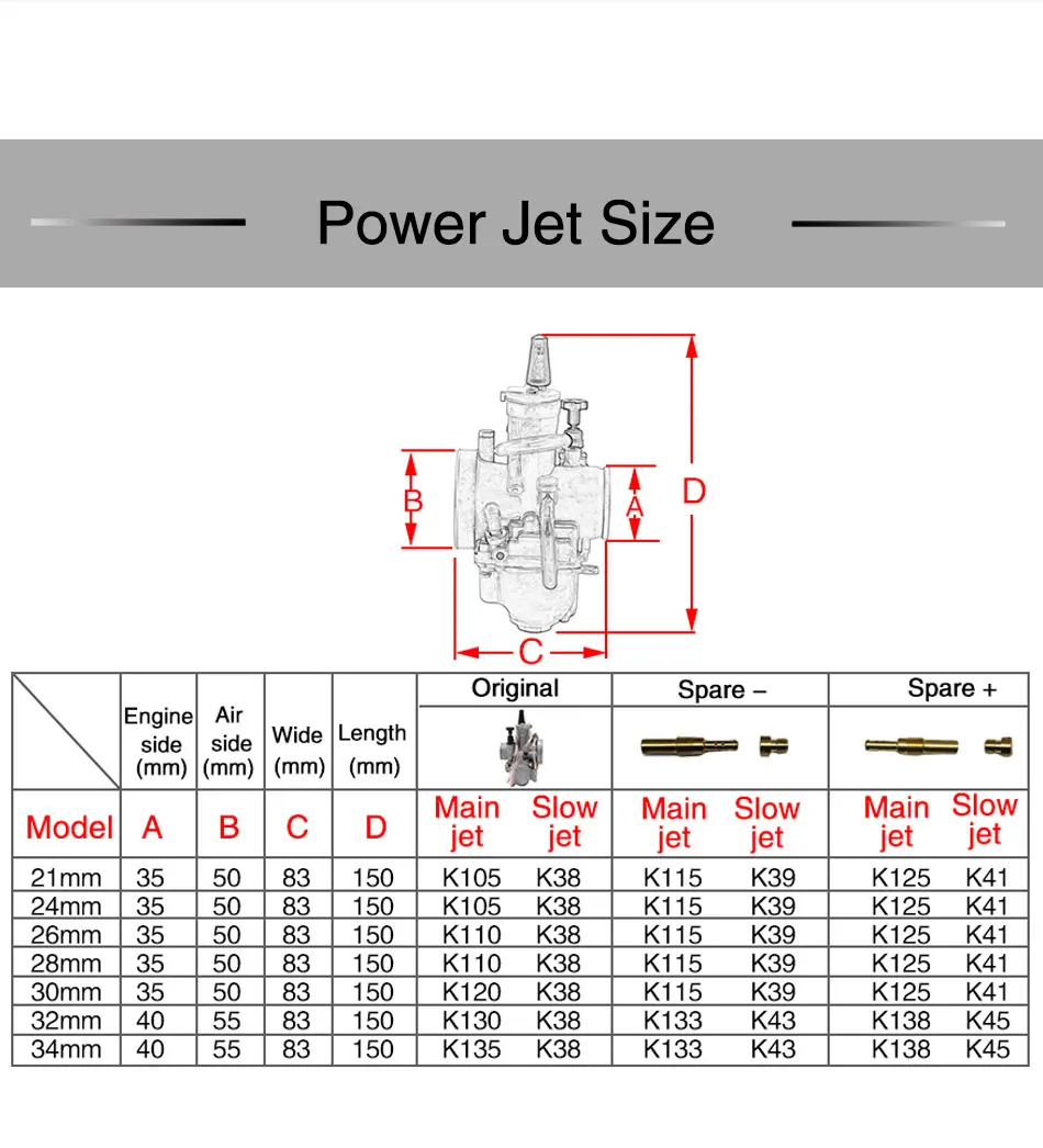 ZSDTRP Универсальный PWK 21 24 26 28 30 32 34 2T 4T карбюратор двигателя Карбюратор с струей питания для Koso OKO Keihin 75cc-350cc