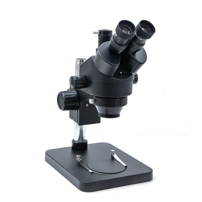 Trinocular 7x 45x zoom stereo microscope 1. Good pixels, high resolution, deep field, long working distance makes operation convenient and comfortable, cou can connect to the external display 2. Large base plate, convenient for a series of work, will not lose parts,the base plste size is195x256x20cm 3. LED lights can adjust the brightness, low power and safety, the inner size is 60mm, the input voltage is AC901-240v, the output power is 4.5w, the light color is white, the number of bulbs is 56 PCS 4. Can be external work, the eyepiece is clearer, the operation is easier magnification7x-45x (optional: 2.1x-180x) EyepieceHigh eye point large field eyepiece WF10x/20mm(optional:20x/20mm) objective0.7x-4.5x viewing headBinocular head Inclined at 45 degrees, Continuous magnification objective lens 0.7x-4.5x, interpupillary distance 54-76mm, bilateral visibility adjustable Working distance100mm (effective distance), select auxiliary objective, which can be extended to 30mm-287mm Auxilliary objective lens0.3x/287mm, 0.5x/165mm,0.7x/120mm,2x/30mm,1.5X45MM Focusing bracketThe tightness of the focusing handwheel can be adjusted, lifting range is 50mm