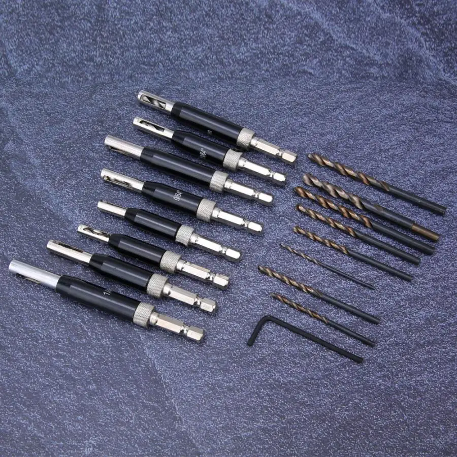 Door Window Hinge Hole Puncher Self Centering Drill Bit with Hex Wrench