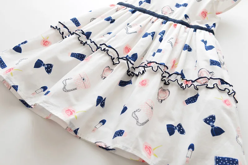 Детское летнее платье принцессы для свадебной вечеринки с принтом и поясом