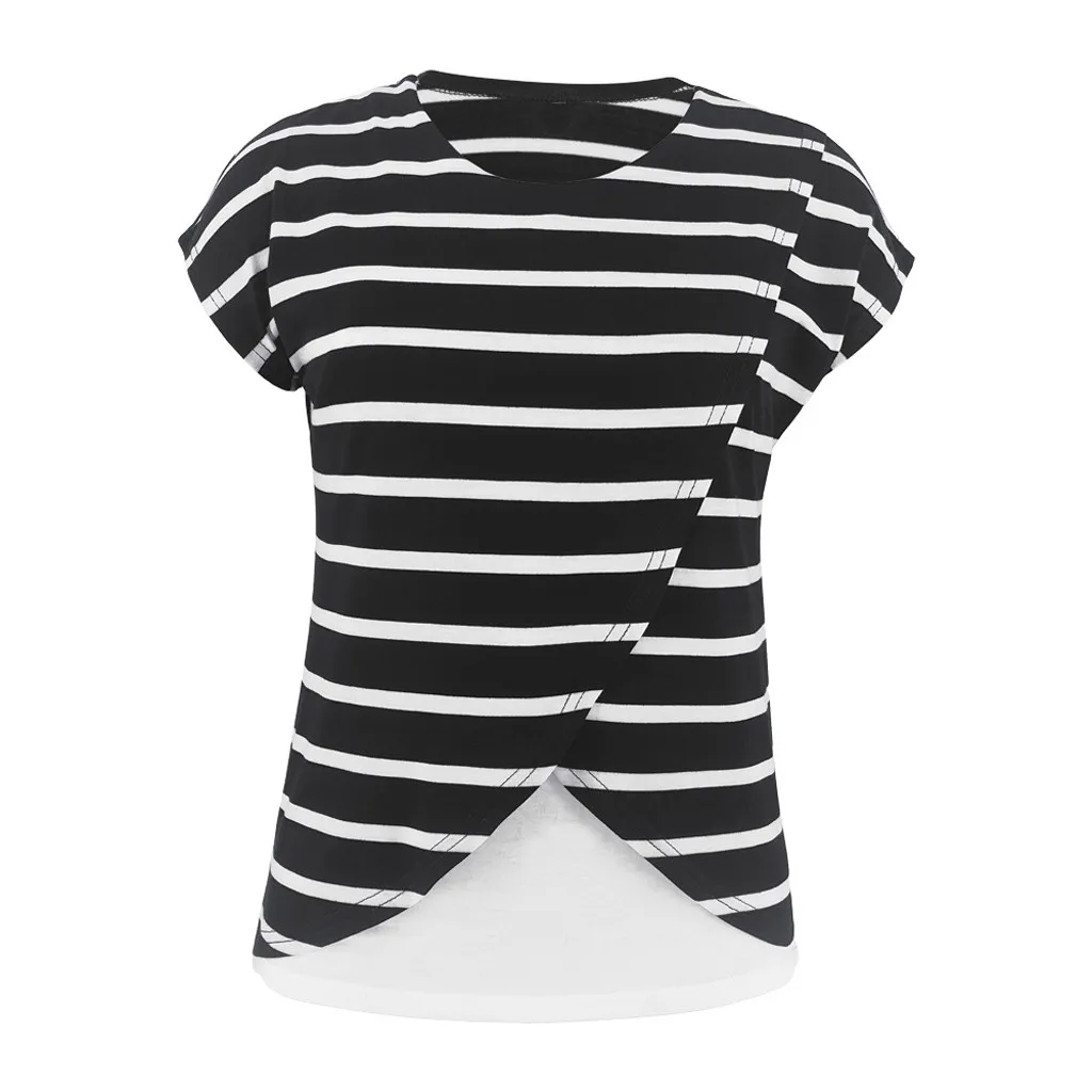 Женская полосатая блузка с круглым вырезом и коротким рукавом для беременных