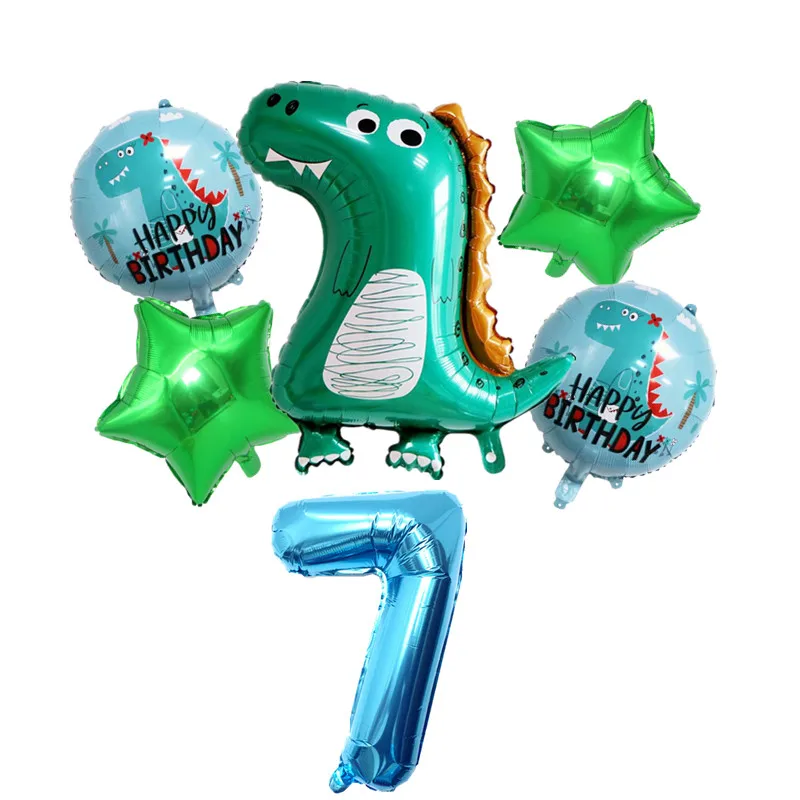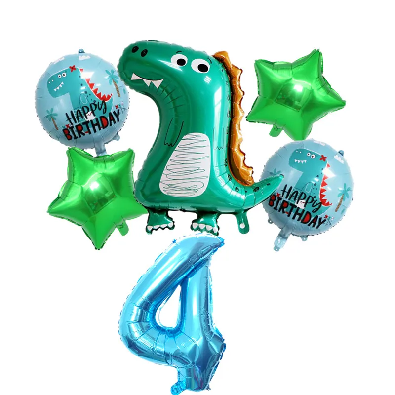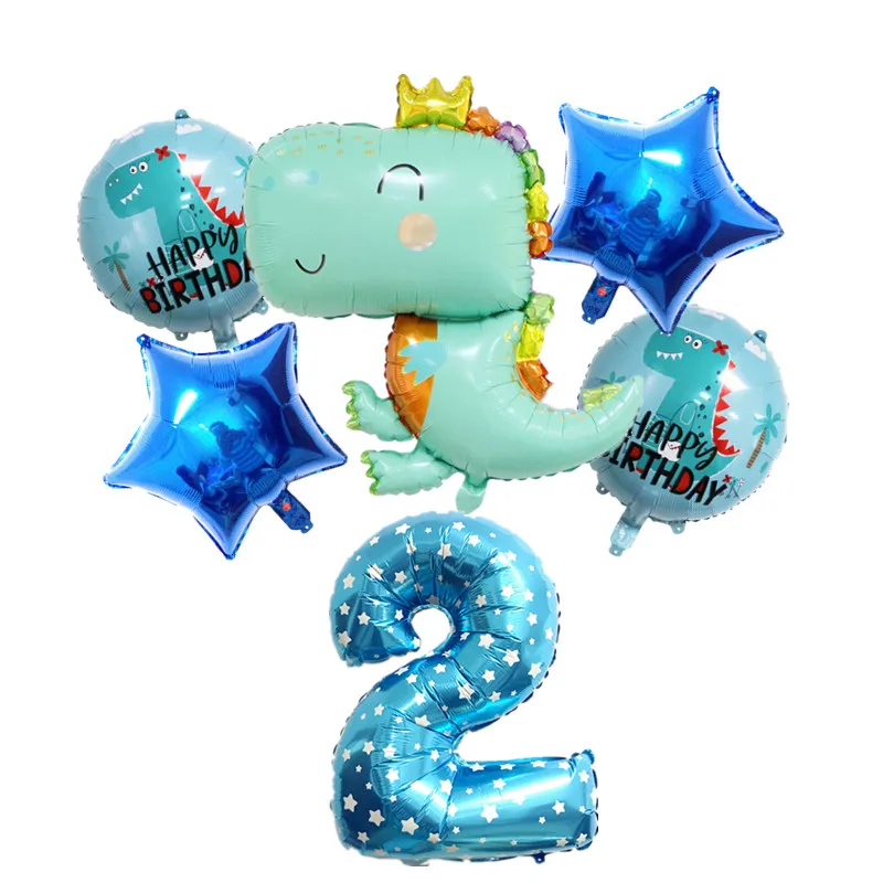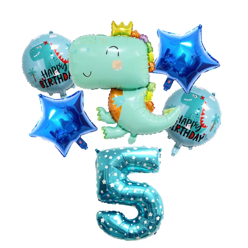 6 шт., милый динозавр, алюминиевая фольга, воздушный шар, цифровой пятиконечный номер звезды для детей, день рождения, вечеринка, динозавр, тема decorati