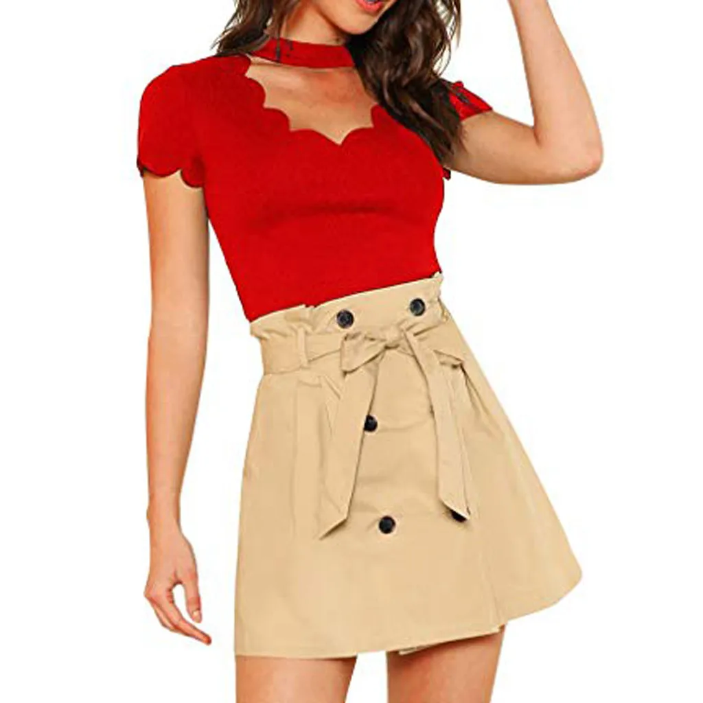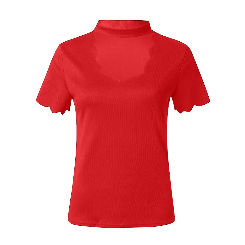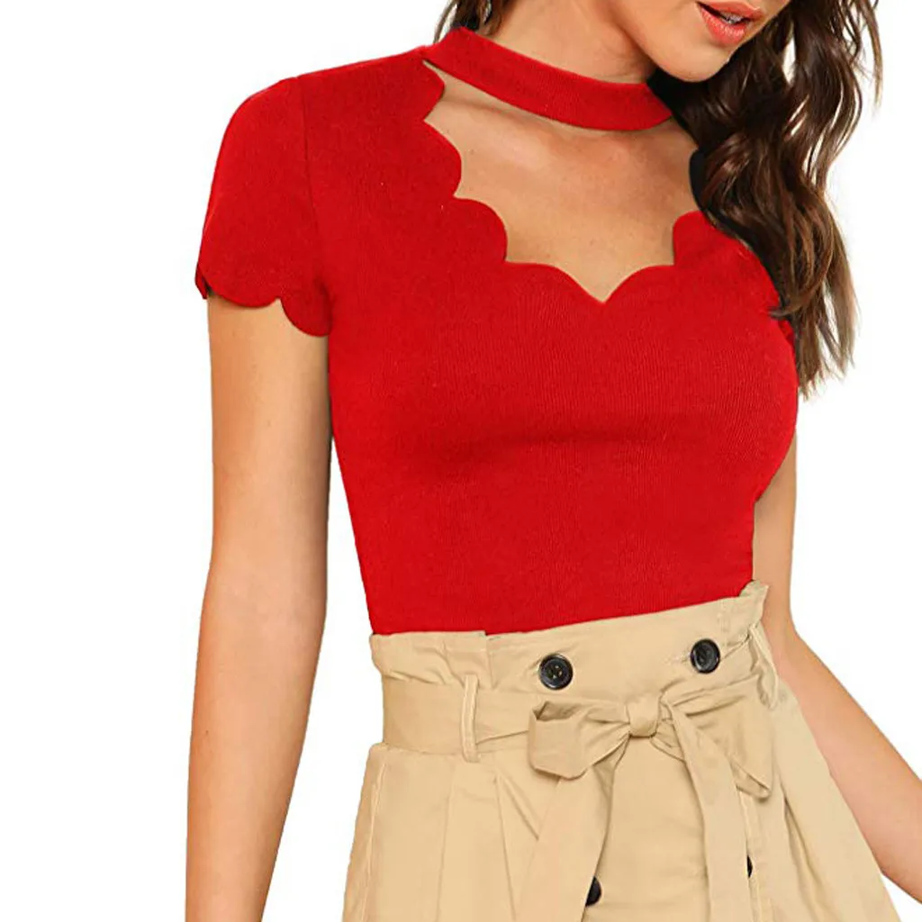 Женский волнистый вырез V Сексуальная футболка с коротким рукавом