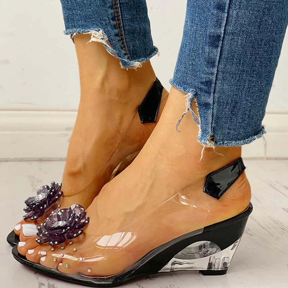Обувь Женские босоножки на плоской подошве Пляжная обувь танкетке с открытым