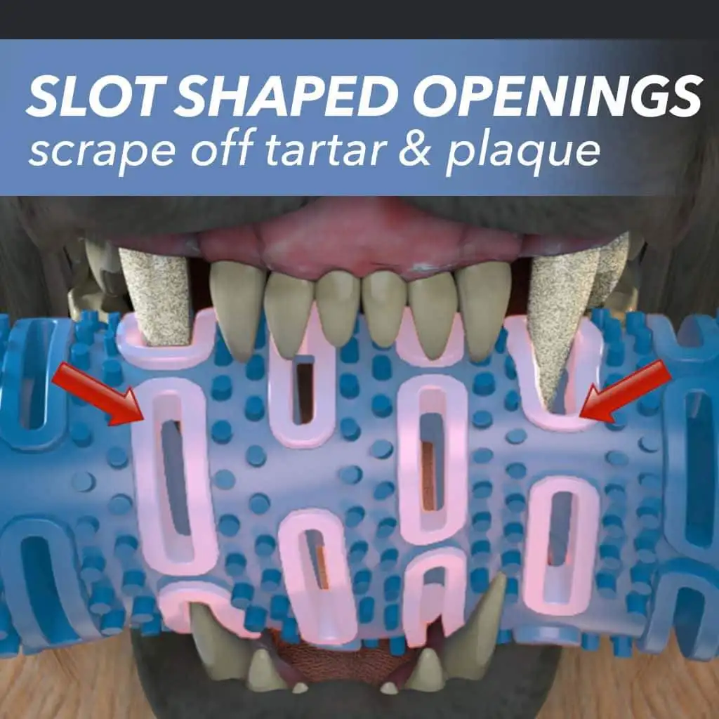 Работает 3 способа: зубная щетка для собак чистит зубы, царапает зубной камень и зубной налет с зубов и массирует десны