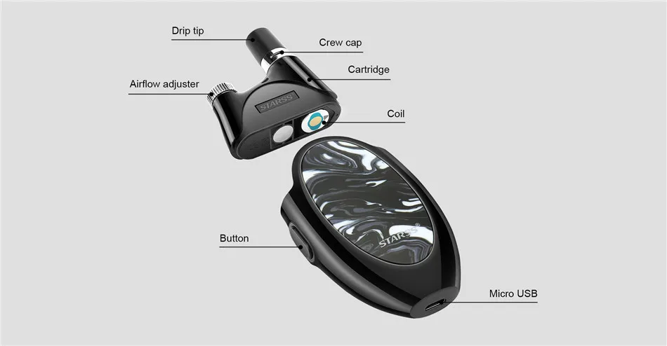 Romeo-Новейшее устройство ultra pod с изогнутой поверхностью. Он использует передовую технологию передачи в форме для достижения превосходного внешнего вида. Он питается от литий-ионного аккумулятора 1200 мАч, который поддерживает устройство в течение всей недели нормального использования. Он адаптирует верхнюю систему впуска обеспечивает герметизацию нижней части картриджа и позволяет избежать протекания. Регулируемый поток воздуха позволяет пользователям регулировать поток воздуха по мере необходимости. С максимальной выходной мощностью 25 Вт, он также поддерживает 3 регулируемых выхода, которые указаны 4 RGB индикаторами. Используя новейшие технологии нагрева плоской сетки, катушка обеспечивает огромные облака, сопоставимые с модом. Благодаря универсальному дизайну STARSS Romeo станет идеальным стартовым комплектом для вас.