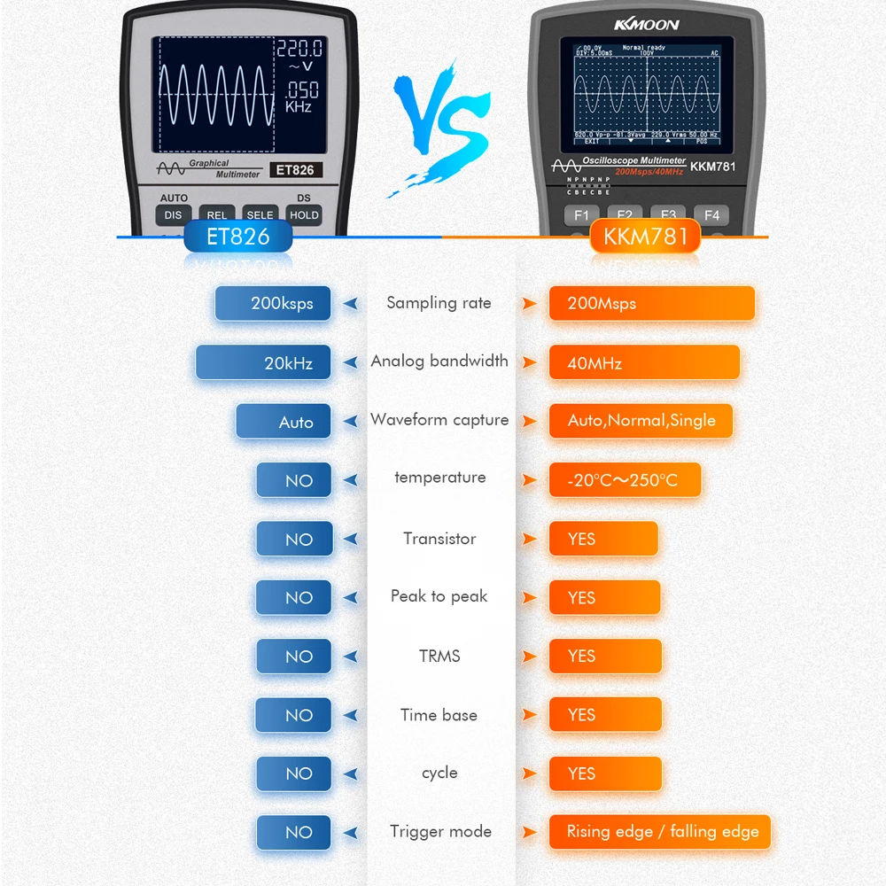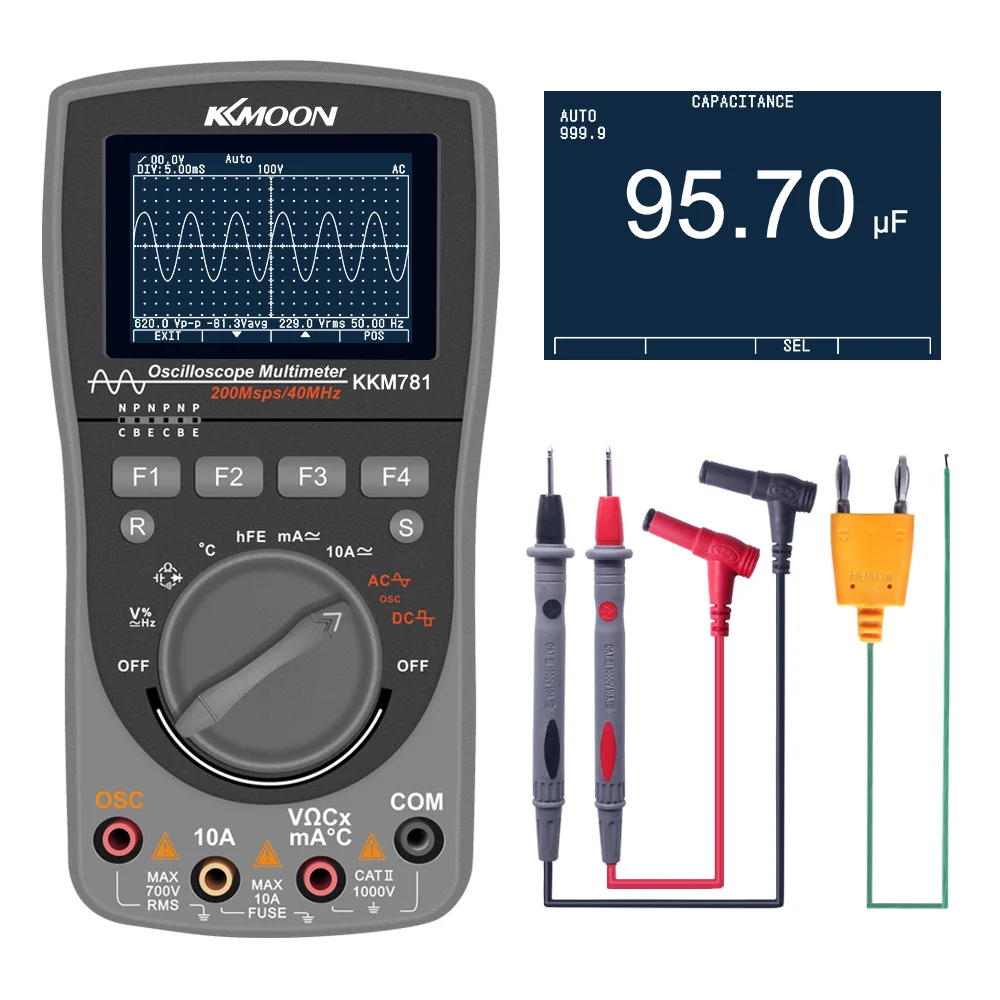 KKM781 является примером сочетания осциллографа и мультиметра auto range, который сочетает в себе все особенности существующего с функцией цифрового осциллографа. Совместим с трендовым, маленьким и портативным ручным осциллографом для обнаружения неисправностей в поле.