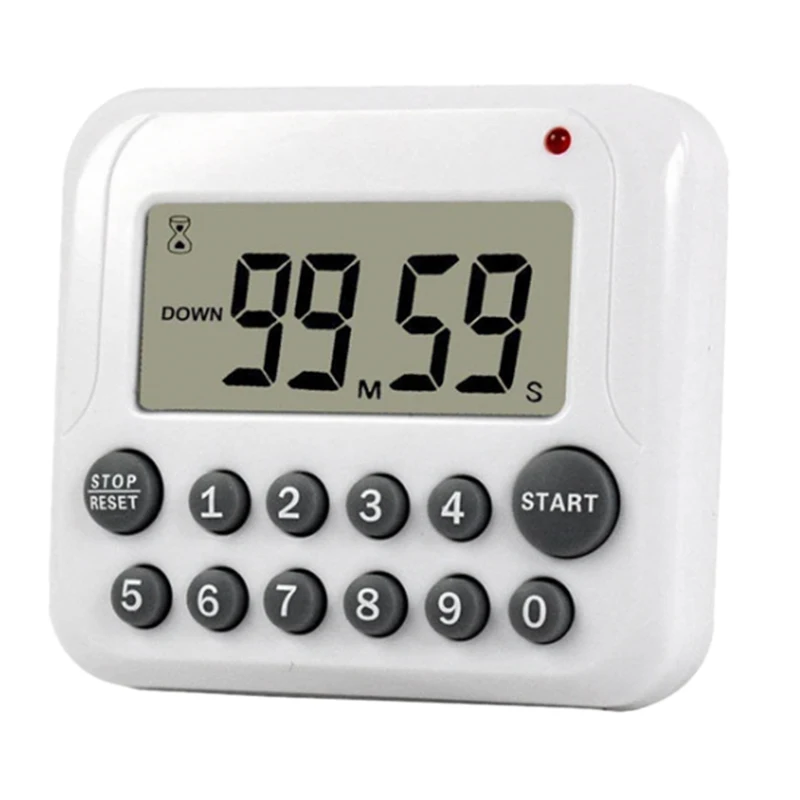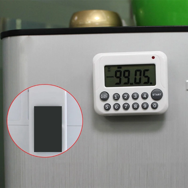 Кнопка «Пуск/стоп» для вызова последней настройки времени, если она включена, но не работает, она выключится через 10 минут. магнитная спинка, выдвижная подставка и крючок для подвешивания: цифровой кухонный таймер удобно расположить тремя способами, особенно его сильный магнит отлично работает на холодильнике. широко применяется: идеальный таймер для домашней работы, Упражнения, тренировки в тренажерном зале, приготовление пищи (т. Е. Таймер яиц), спорт, игры и занятия таймером