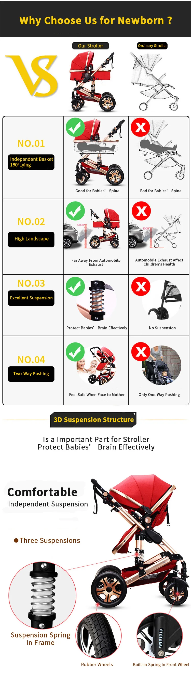 Многофункциональная детская коляска для новорожденных 3 в 1 с высоким ландшафтом, двусторонняя детская коляска, удобная детская коляска, подарки для детей, Прямая доставка в ЕС