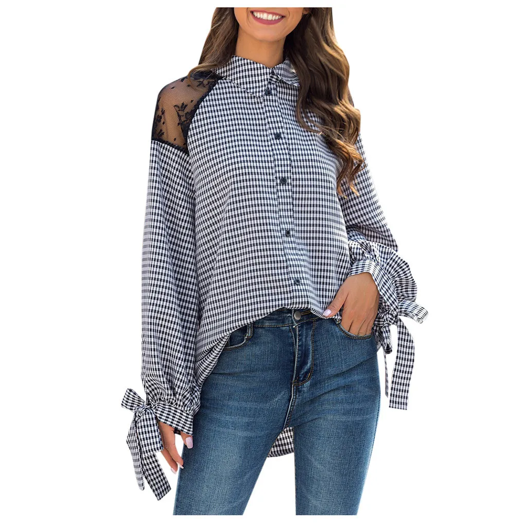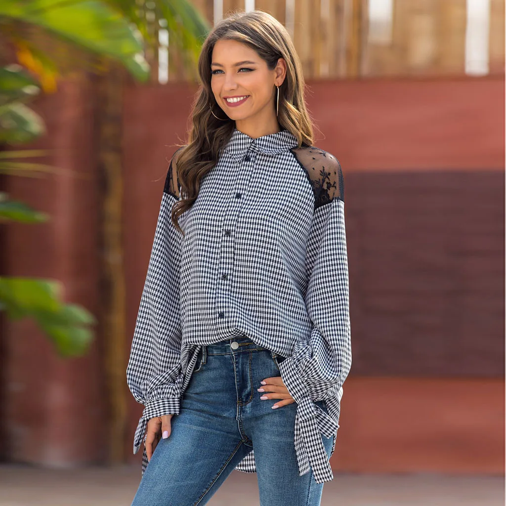 Женская Повседневная клетчатая футболка с длинным рукавом, блузка, одежда, топ, блузка