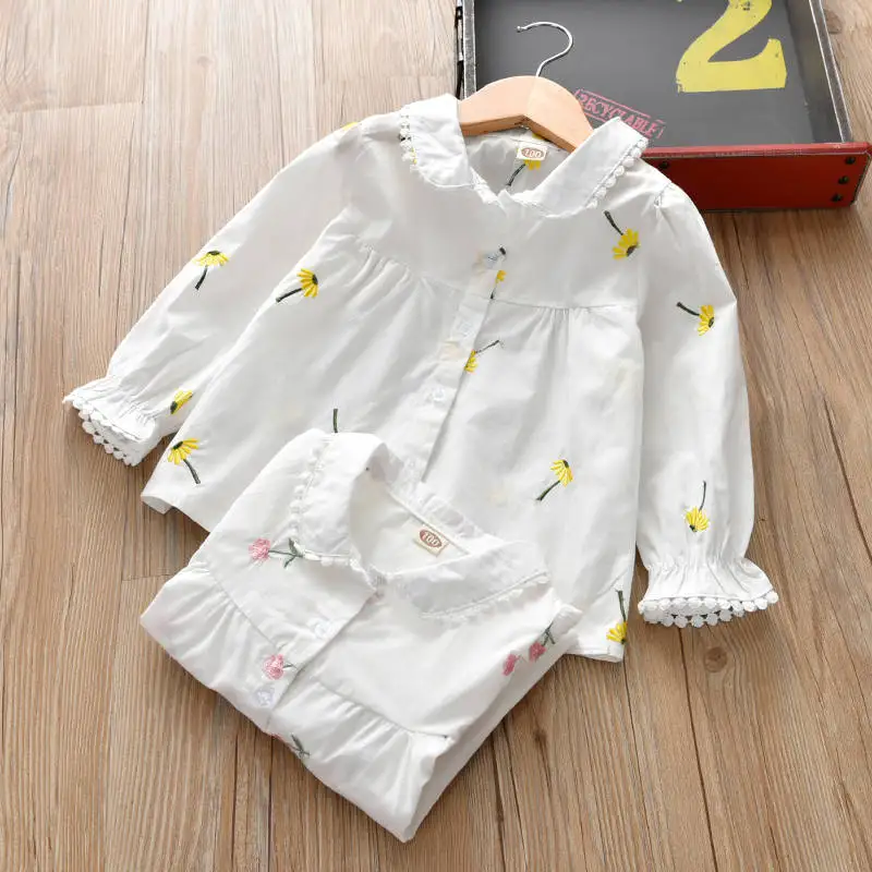 Детская рубашка для маленьких девочек белая Повседневная на весну и осень