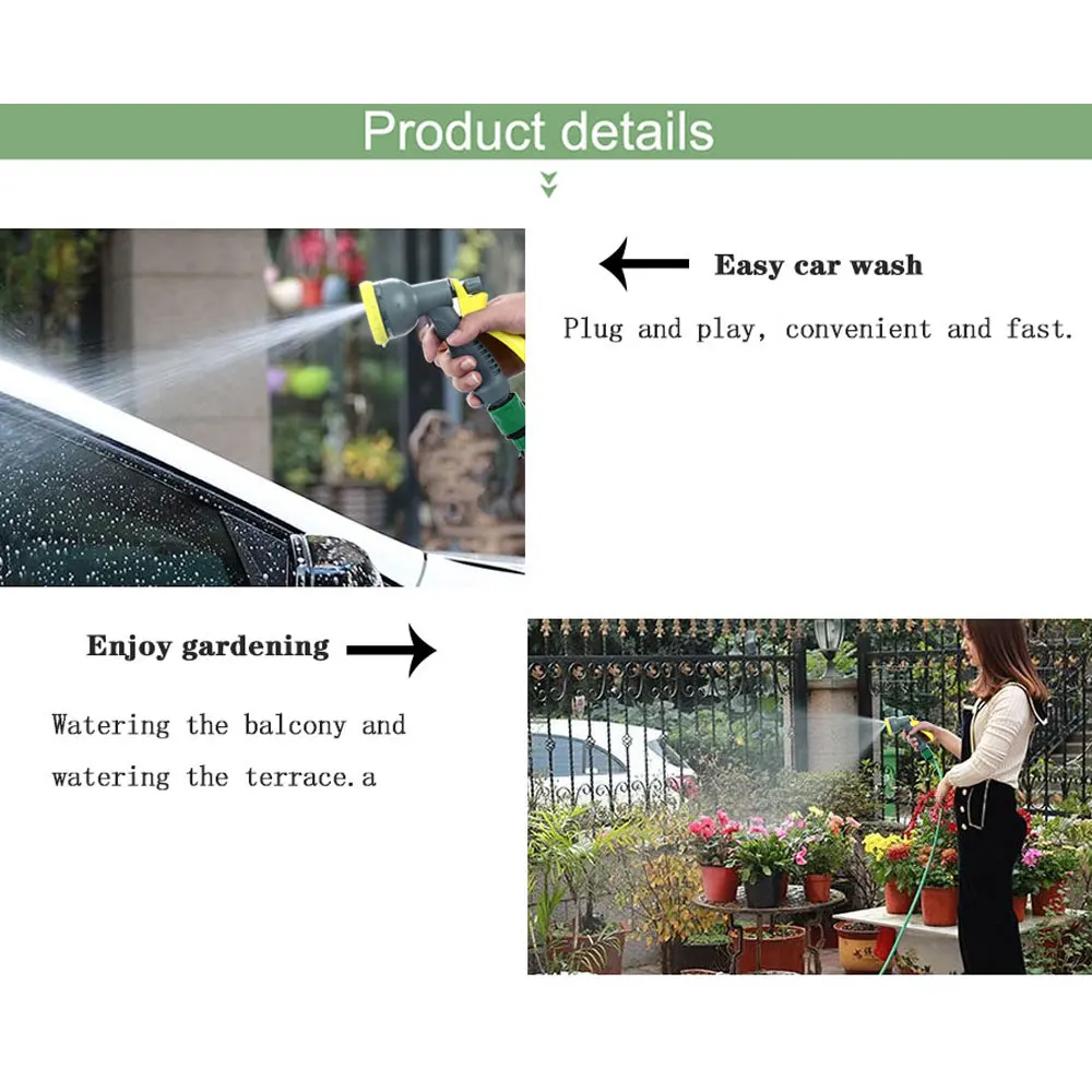 ★Водяной пистолет высокого давления: мощный, автомойка легче заполнить ★Цельный Дизайн: Удобный, быстрый, экономит время и силы ★6 режимов: типы режимов соответствуют различным видам использования. Чем больше режимов, тем шире диапазон использования. ★Высокопрочная водопроводная труба: противостоящая структура, устойчивая к давлению конструкция, Безопасность и защита окружающей среды, антифриз и износостойкая ★Водяной пистолет высокой интенсивности: Вращающаяся насадка может менять различные методы полива, а металлические водные соединения эффективны против давления