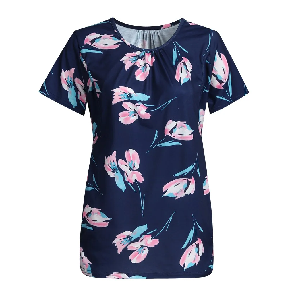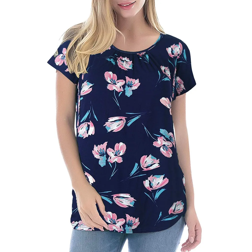 Women Maternity Short Sleeve Floral Print Nursing Tops T-shirt For Breastfeeding