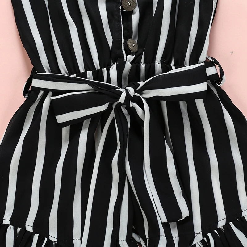 Летний комбинезон для маленьких девочек; Шорты с тонкими лямками; Трусики с подвязкой и бантом для малышей; Полосатый комбинезон без рукавов; Повседневная праздничная одежда